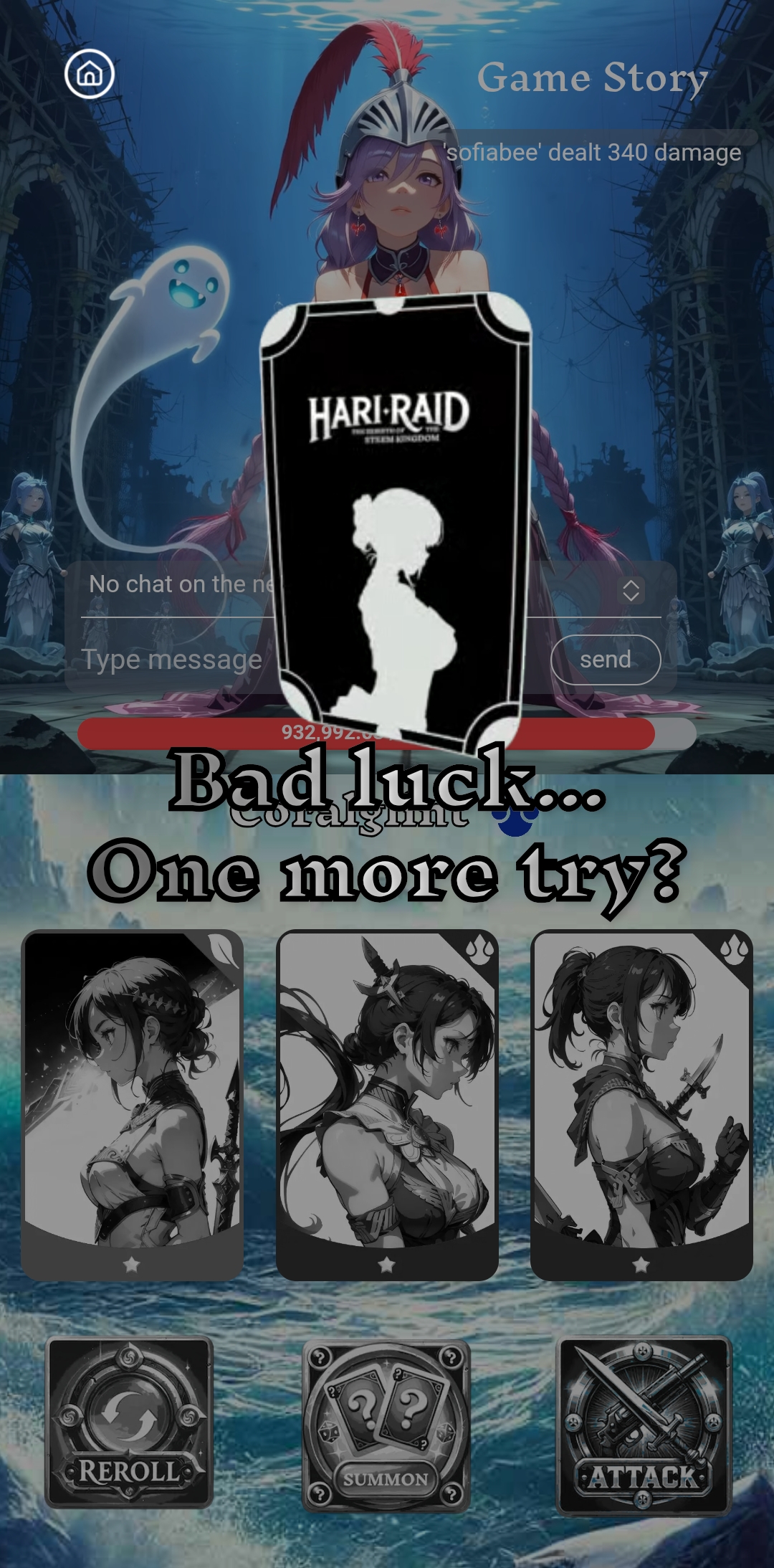 Now,I clicked on play button. Then, I Click the summon button.There I saw three card today. These are not so good card for today. Then I reroll the card.These were also low star card.After that, I clicked on attack button.