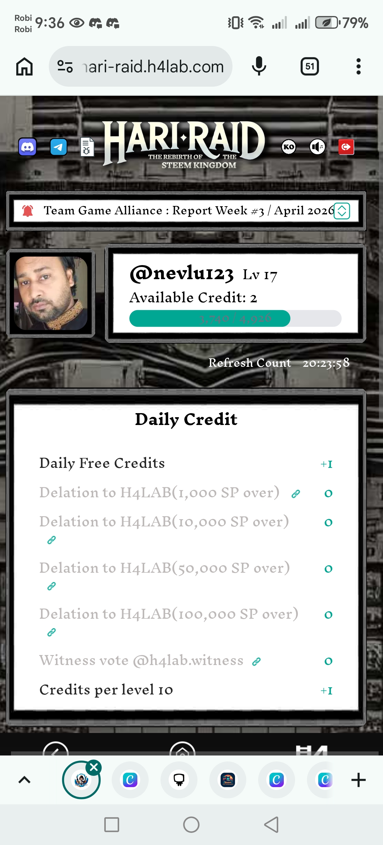 Today at first claim 10 hari points as like everyday also level and cradit was as like everyday.