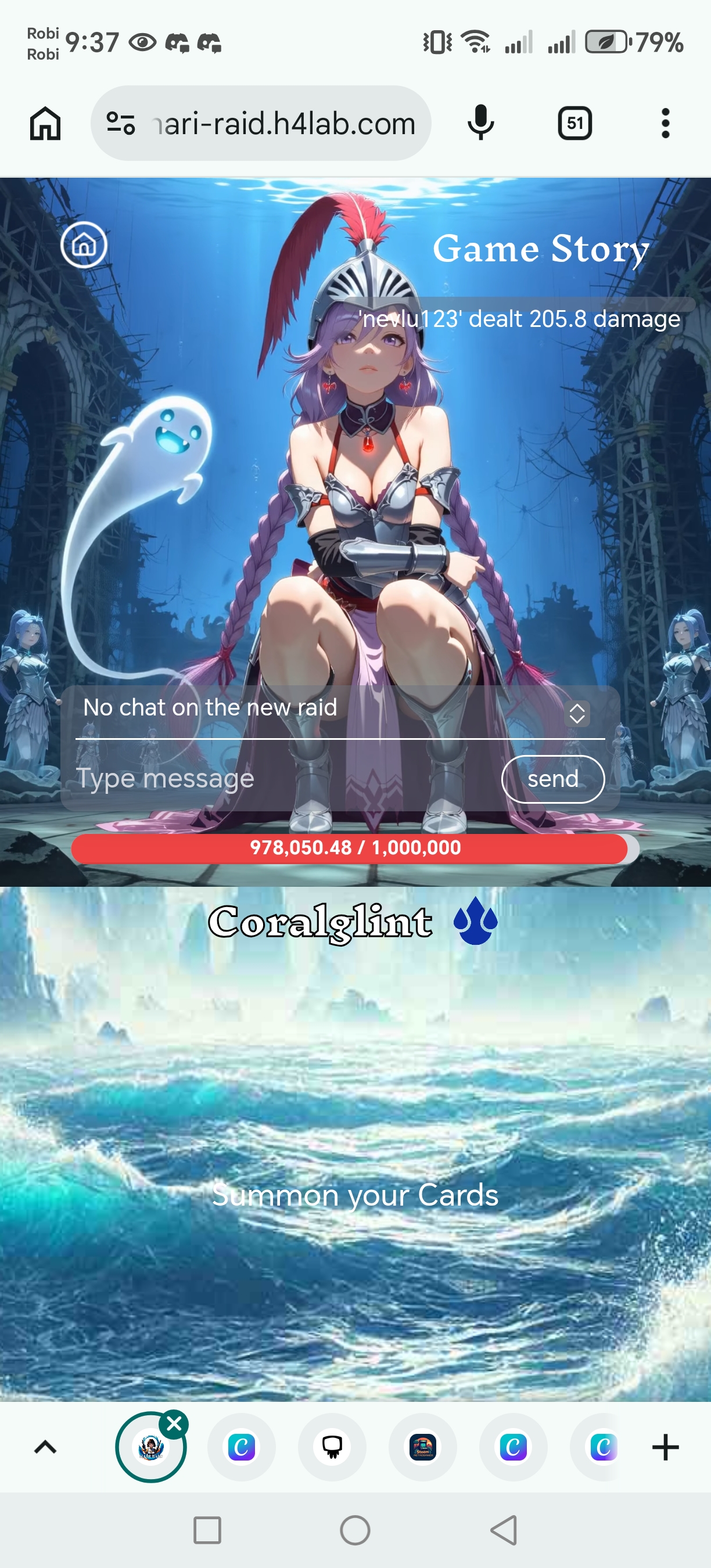Then go to play game also click on summon next click on attack and start fight also seen damage 205+