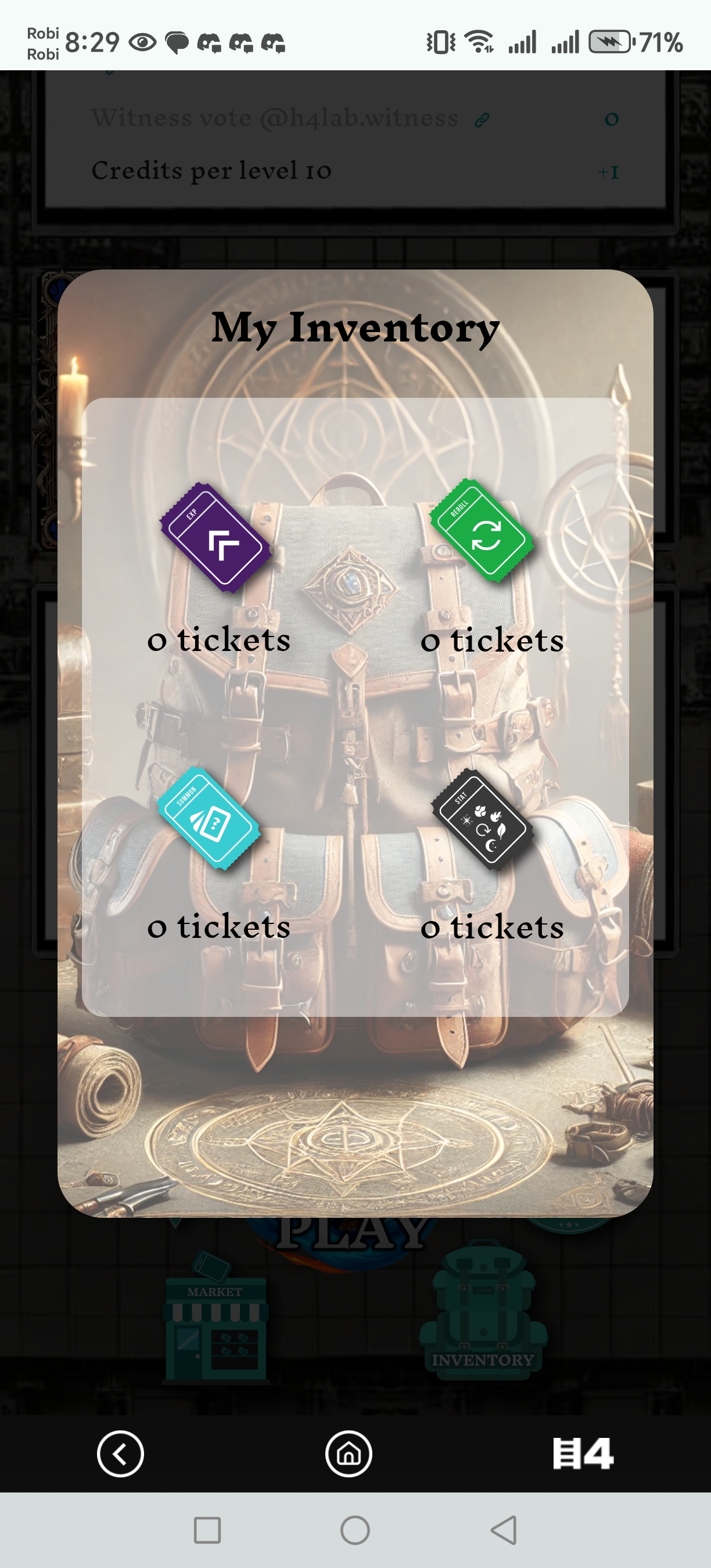 Now go to check my inventory to see my ticket balance also My inventory balance is zero, cause i have finished all of cradit doing fight.