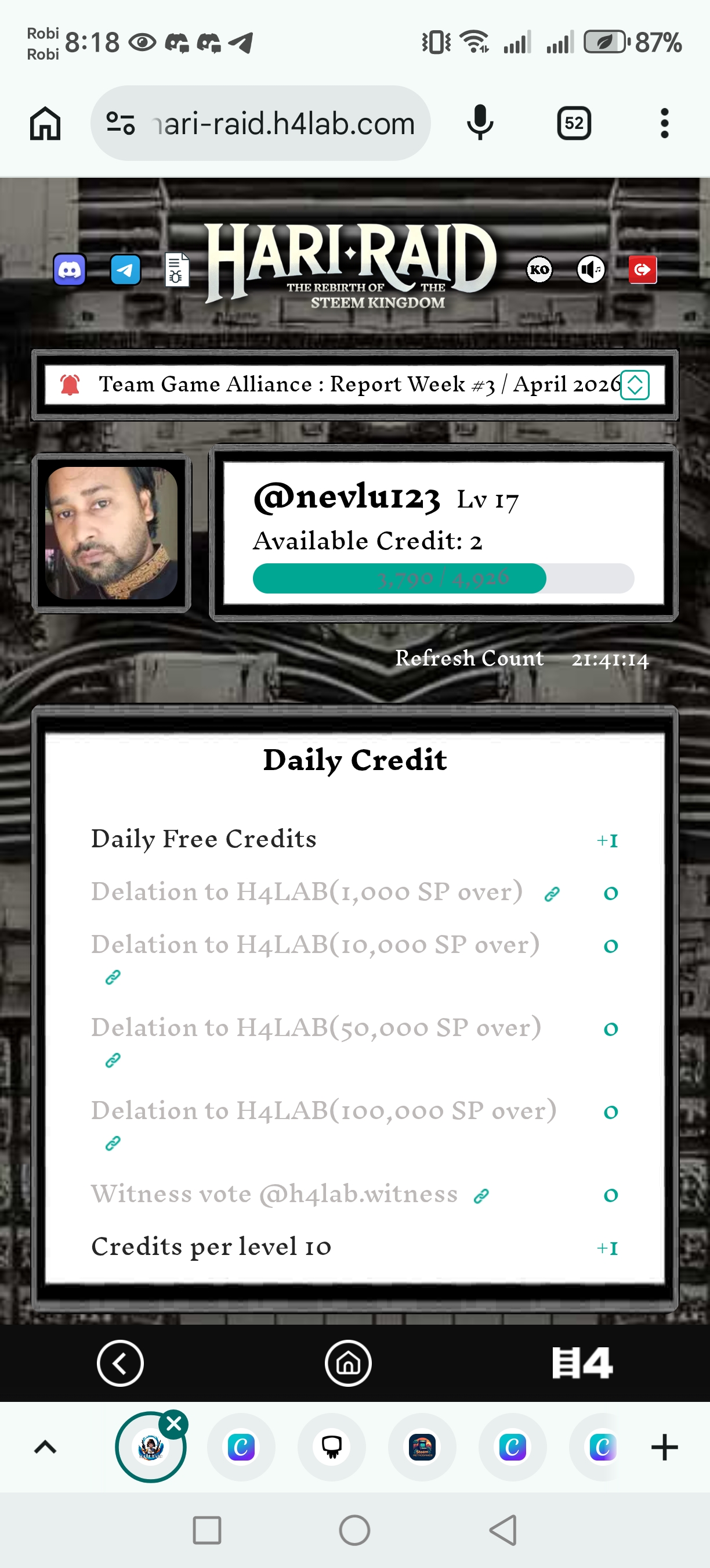 Today at first claim 10 hari points as like everyday also level and cradit was as like everyday.