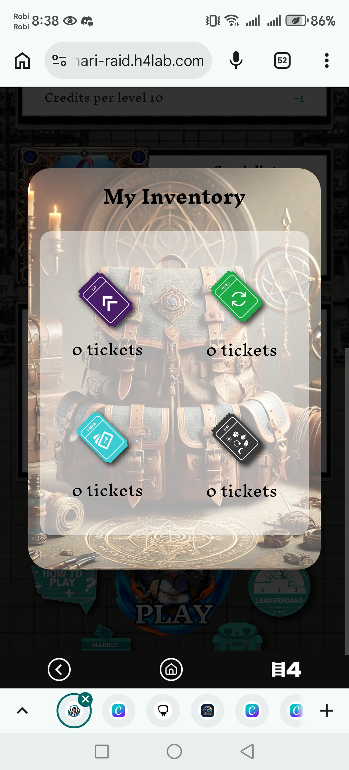 Now go to check my inventory to see my ticket balance also My inventory balance is zero, cause i have finished all of cradit doing fight.