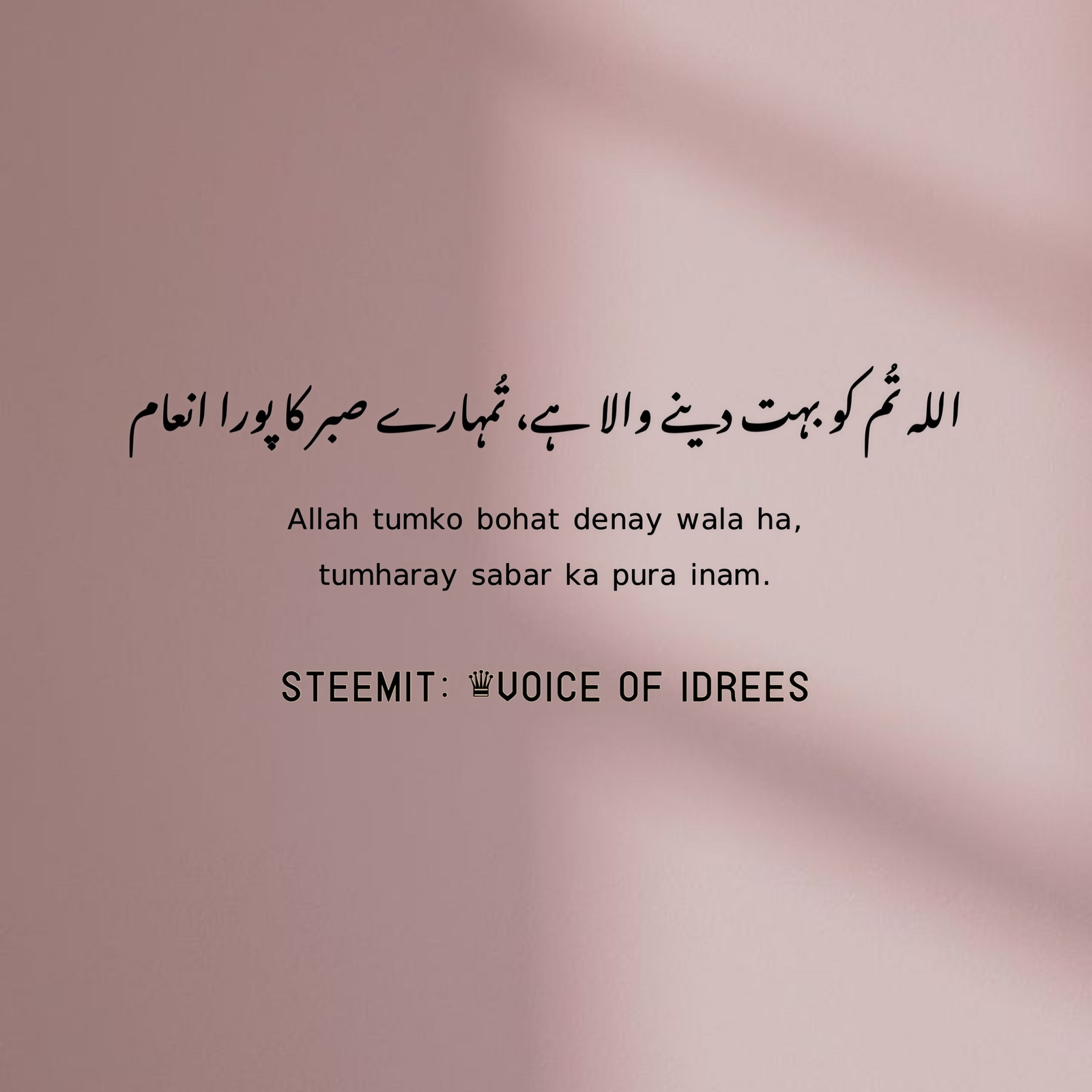 اللہ تُم کو بہت دینے والا ہے، تُمہارے صبر کا پورا انعام-