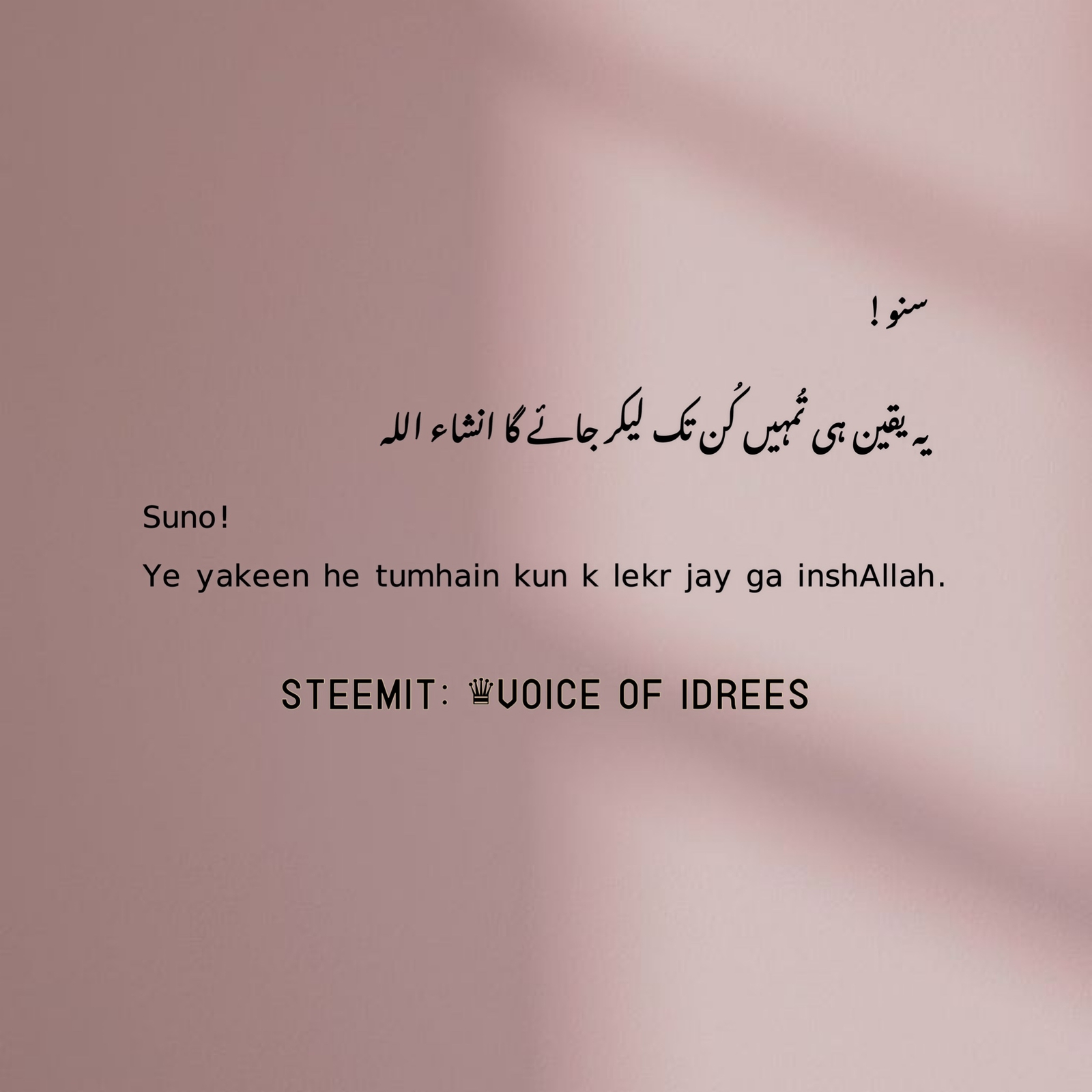Suno! Ye yakeen he tumhain kun k lekr jay ga inshAllah.