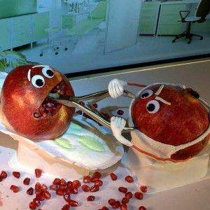 Anyway hij had dus ook zo'n appel en een soort citroenpers waarmee de pitjes er makkelijk uit zouden moeten komen. Ik zal jullie verdere details besparen, maar uiteindelijk eindigde deze YouTuber met een zware hamer in zijn ene hand, pitjes in de andere en een zeer onfortuinlijke granaatappel-restjes op een zo mogelijk nog ontfortuinlijkere citroenpers op de tafel voor hem......