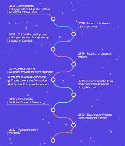 The platform will work as a way to connect people in a "win-win" situation, because people want to provide equipment or offer services to be useful, like the people who are looking for them. All transactions will be made directly between interested parties and using company tokens, users will not have to pay high commission fees for transactions. The company claims that it has received a very positive review so far and that its goal is to serve millions of users around the world and really influence their lives. AllSporter intends to launch its service before the end of 2018, and then enter the US market in 2019. It will also expand in the West European market at the end of the year and introduce software for the organizers of sports events. In 2020, the company will expand into Asian markets.