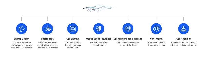 • Collaboration between Blockchain and Automotive industry; The automobile industry is no doubt a thriving one, yet dishonest actors and inefficiencies make it problematic. Blockchain is capable of facilitating solutions to some of the many problems which disrupt the industry. By merging blockchain and the automotive industry, AlphaCar intends to apply the benefits of security, transparency and efficiency of blockchain technology to this outmoded and fractured industry. Blockchain technology will essentially ensure all industry-relevant records can neither be destroyed not deleted- and accessed anywhere, by anybody, globally at any time.