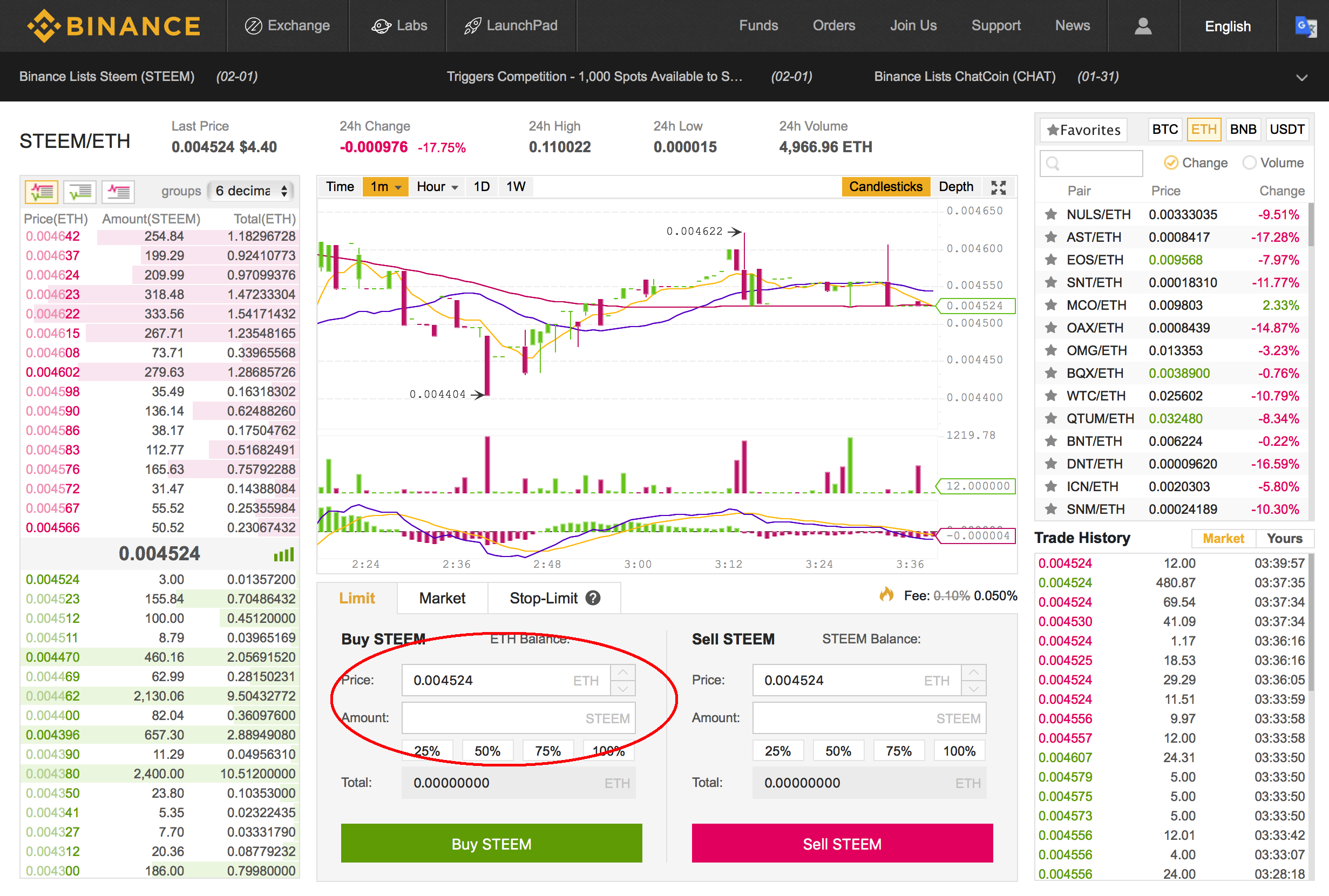 And finally we are in the exchange interface! Now you just need to enter the amount you wanna buy and the price you wanna pay for each Altcoin and confirm your order (you can also place an order lower than the given price, which will be filled if the price gets to there):