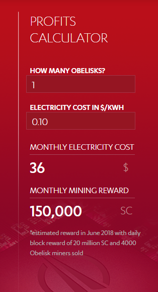 As it says at the end, this is with their current block reward and with the 4000 ASIC miners included. 150,000 Siacoin a month would equal around $1,500 monthly income if the price remained steady minus electricity costs depending on what they charge you for that in your location.