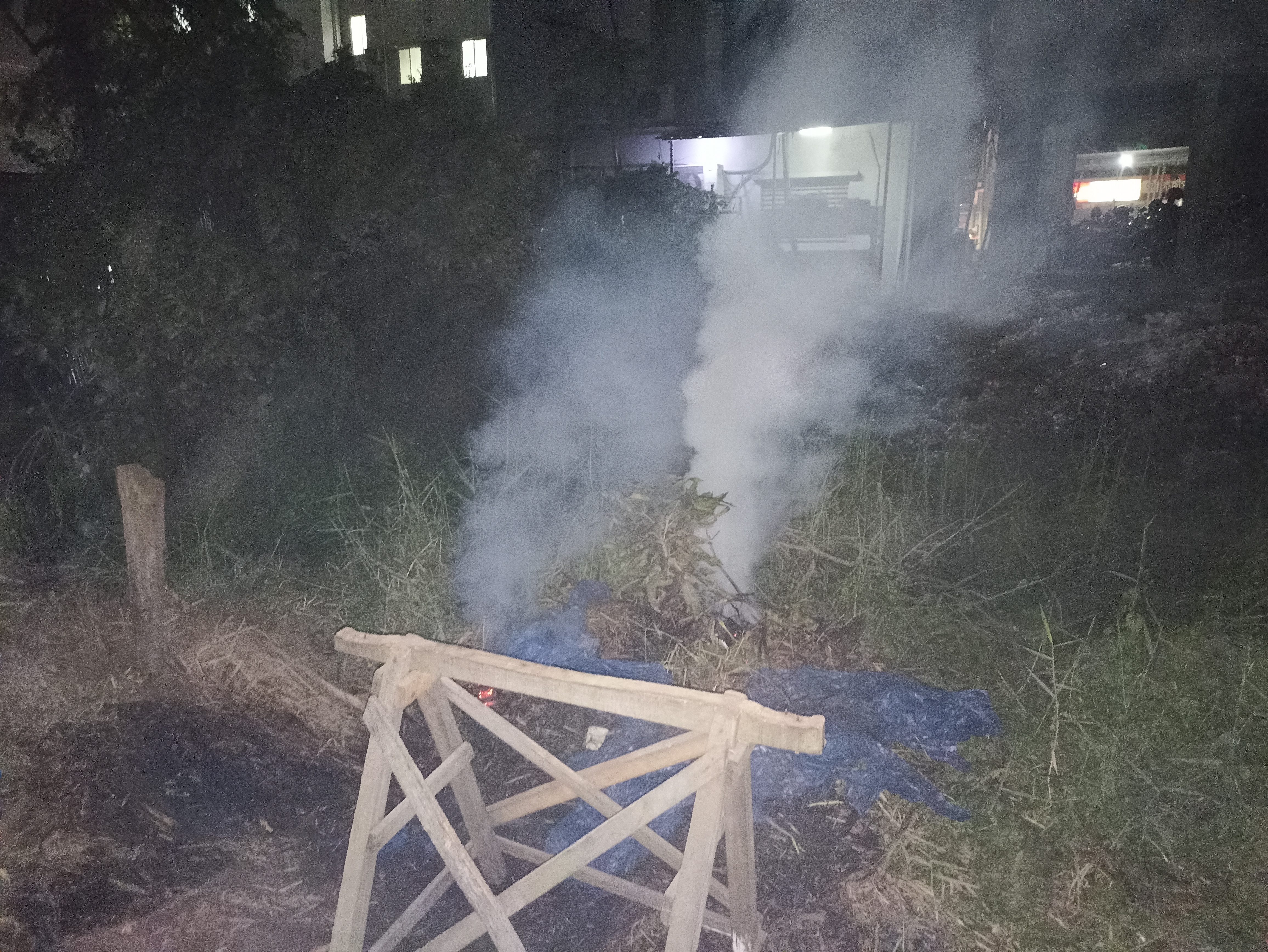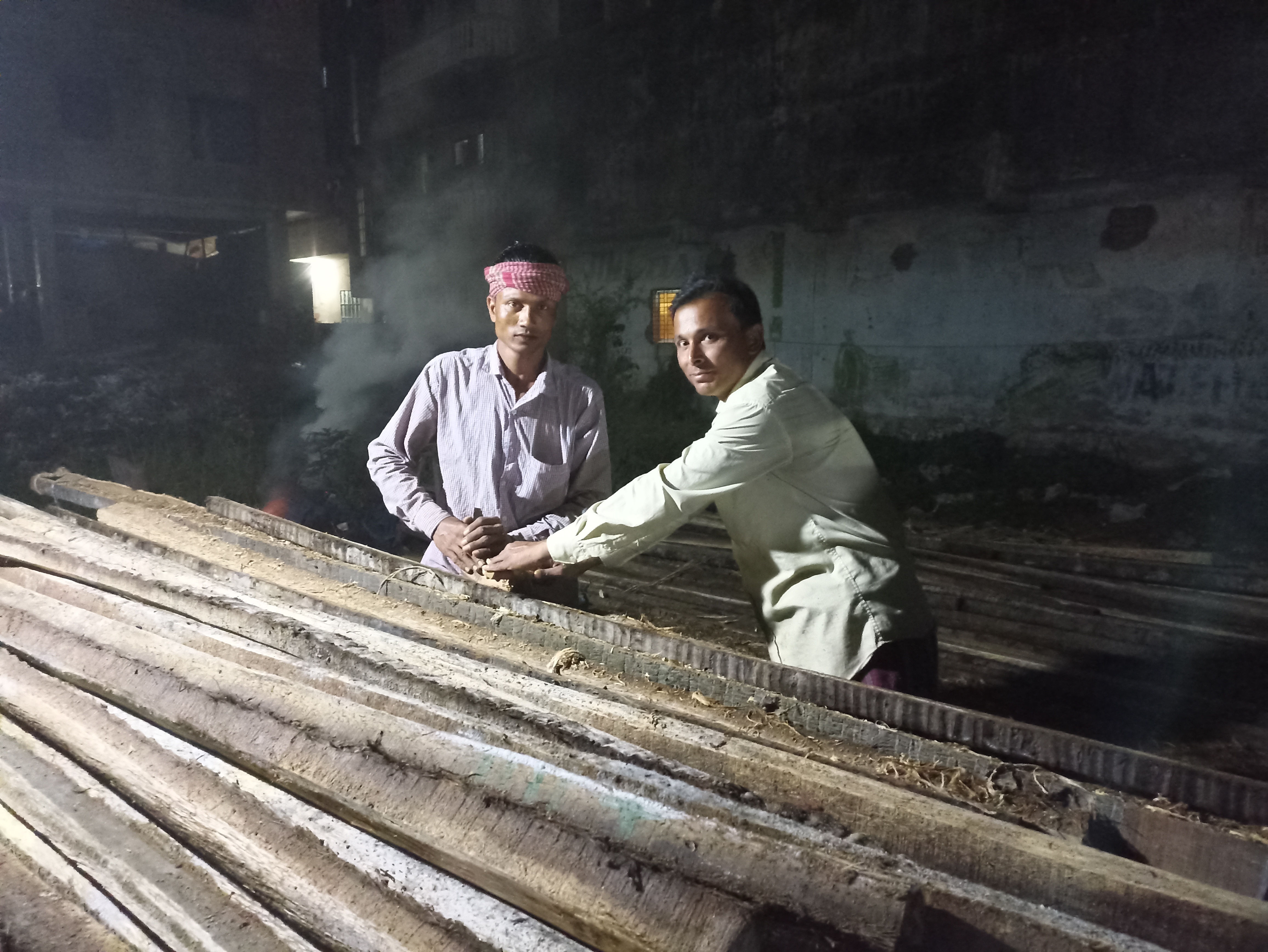 তো আমি গত রাতে একটা প্রয়োজনে আমার দোকানের পিছনে গেলাম। মূলত আমার দোকানের পিছনে এই কাঠ গুলো পরিষ্কার করার কাজ চলে। আমি যখন পেছনে গেলাম তখন রাত নয়টা কি সাড়ে নয়টা বাজে। আমি পিছনে গিয়ে দেখলাম এতো রাতেও এই লোক দুটো হাসিমুখে তাদের অক্লান্ত পরিশ্রম করে যাচ্ছে। এটা দেখে আমার কাছে তখন কেন জানি খুব খারাপ লাগছিল তাদের জন্য। আপনারা কল্পনাও করতে পারবেন না এই জায়গাটা একটু জংলা টাইপ এর জায়গা, তাই এখানে প্রচুর মশা। তাঁরা এ মশা থেকে বাঁচতে পাশে কিছু শুকনো লারকি দিয়ে আগুন ধরিয়ে ধোয়া দিয়ে মশা তাড়ানোর চেষ্টা করছে। আমি তার একটা ছবি আপনাদেরকে দেখানোর জন্য দিলাম।