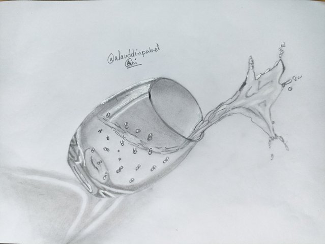 • আপনারা এই চিত্রাংকনটি দেখতেছেন এটিও আমার খুবই প্রিয় একটি চিত্রাংকন। একটি গ্লাসের মধ্যে পানি সে পানি ছিটকে পড়ার একটি চিত্রাংকন আমি অংকন করে আপনাদের মাঝে ফুটিয়ে তোলার চেষ্টা করেছিলাম। আশা করি এই চিত্রাংকনটিও আপনাদের কাছে অনেক ভালো লেগেছিল।