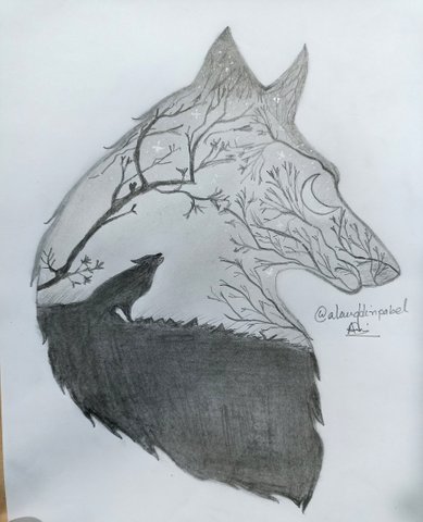 • এ চিত্রাংকনটি আমি খুব নিখুঁতভাবে করে আপনাদের সামনে শেয়ার করার চেষ্টা করেছি। একটি নেকড়ের ছবির ভিতরে চাঁদনী রাতে জঙ্গলের চিত্রাংকন আপনাদের মাঝে ফুটিয়ে তোলার চেষ্টা করেছিলাম। এ চিত্রাঙ্গনটি আমার খুবই পছন্দের মধ্যে একটি। আশা করি আপনাদের কাছে অনেক ভালো লেগেছিল।