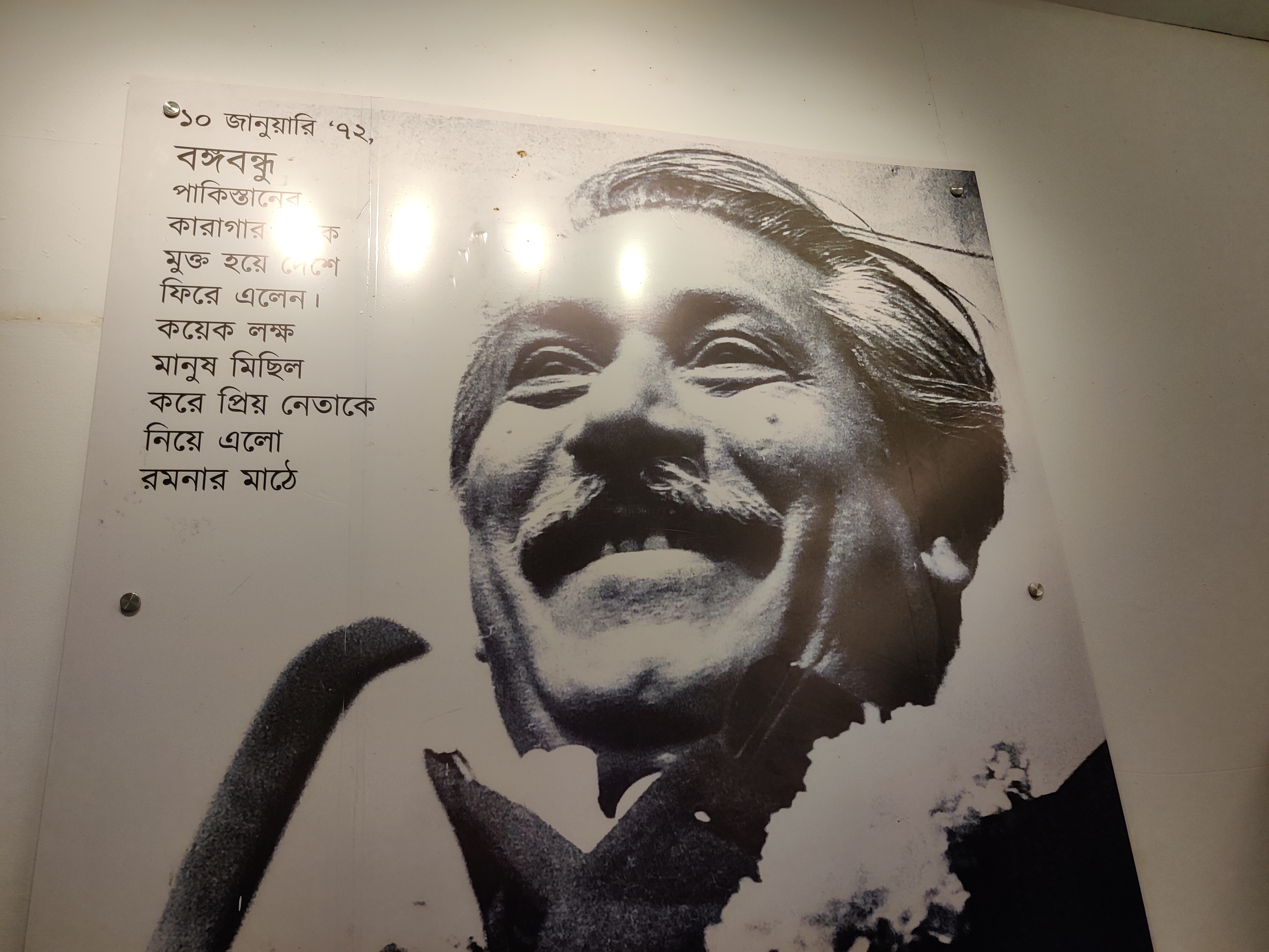 এই প্যাভেলিয়নটি তে মূলত মুক্তিযুদ্ধ ও বঙ্গবন্ধুকে নিয়ে লিখিত বিভিন্ন বই এবং দেওয়ালে বঙ্গবন্ধুকে নিয়ে বিভিন্ন আলোকচিত্র লাগানো ছিল। ওখান থেকে অনেকগুলো বই ঘেঁটে ঘুঁটে দেখলাম কিন্তু কেনা হয়নি। এরপর দেওয়ালে লাগানো আলোকচিত্রগুলো দেখলাম এবং মুঠোফোনে ছবি তুললাম। বেশ ভালই লাগলো। এই বঙ্গবন্ধু প্যাভিলিয়ন এ মিনিট বিশেকের মত ছিলাম। এরপর মাগরিবের আযান দিলে ওখান থেকে বেরিয়ে যায়।