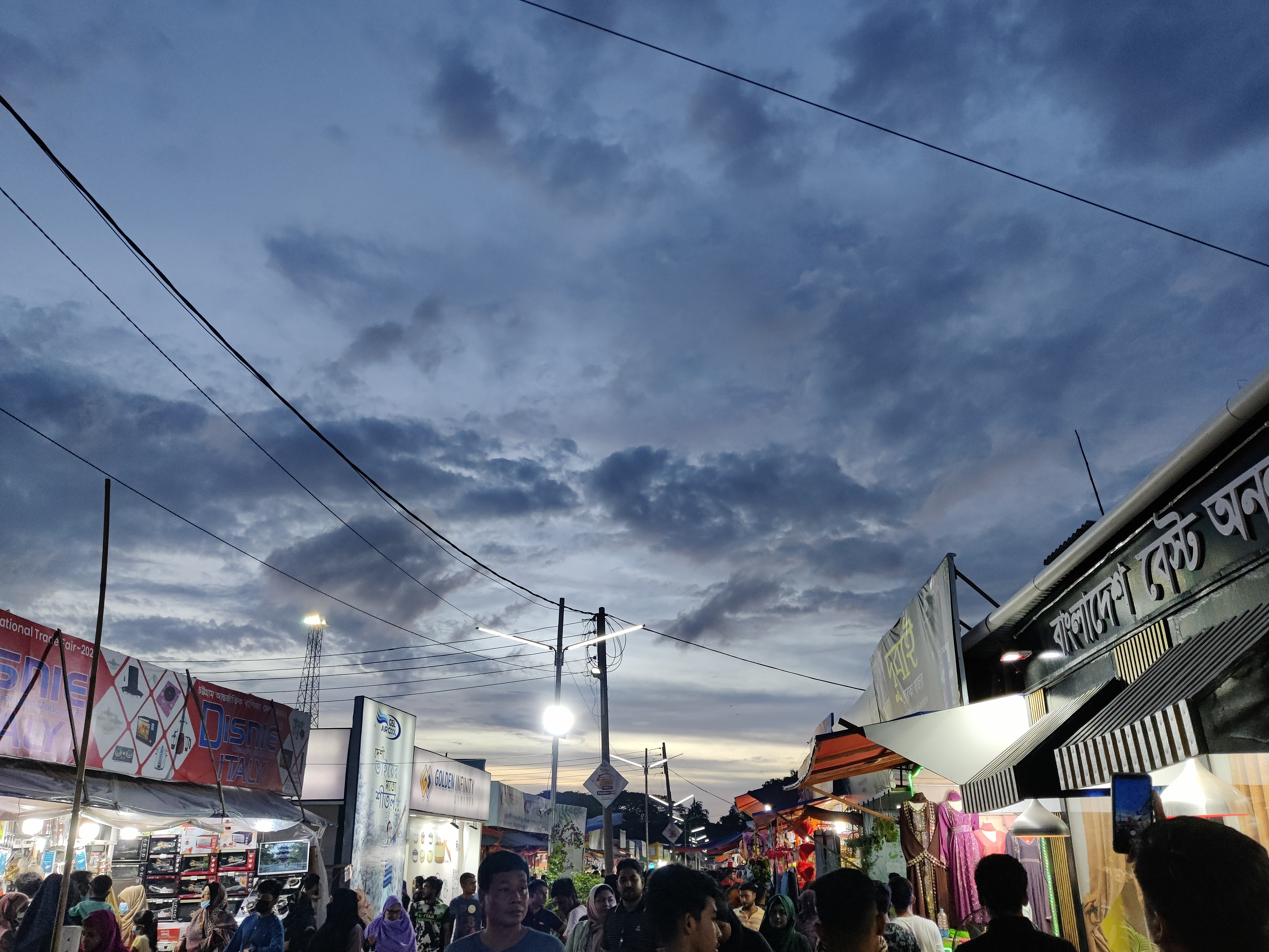 মেলা হাঁটাহাঁটি করতে করতে সময় অনেকটুকুই পার হয়ে গেল এখন প্রায় রাত নেমে এসেছে।