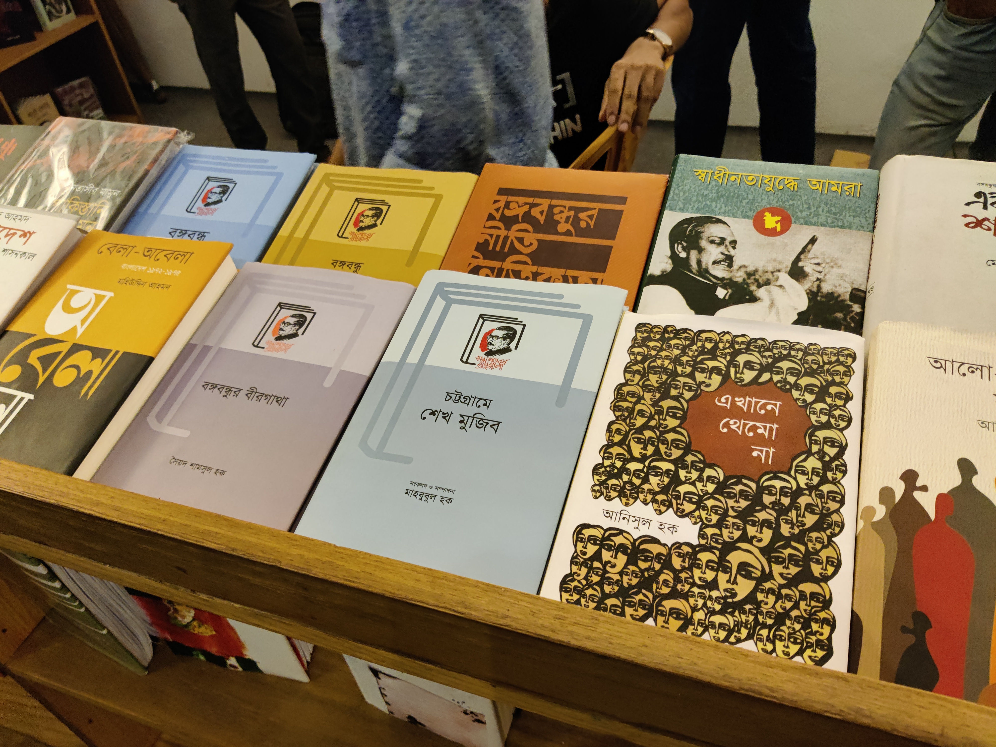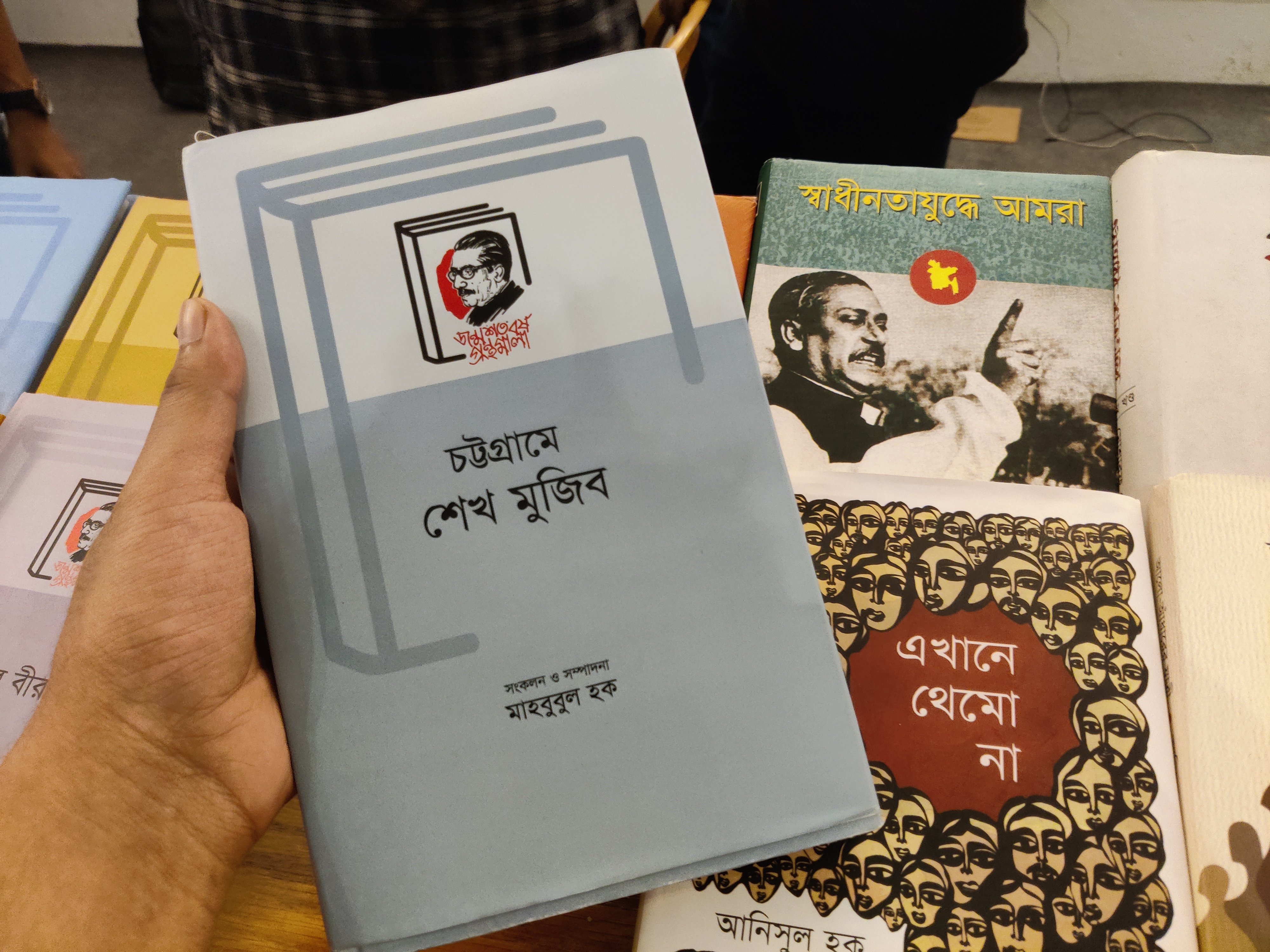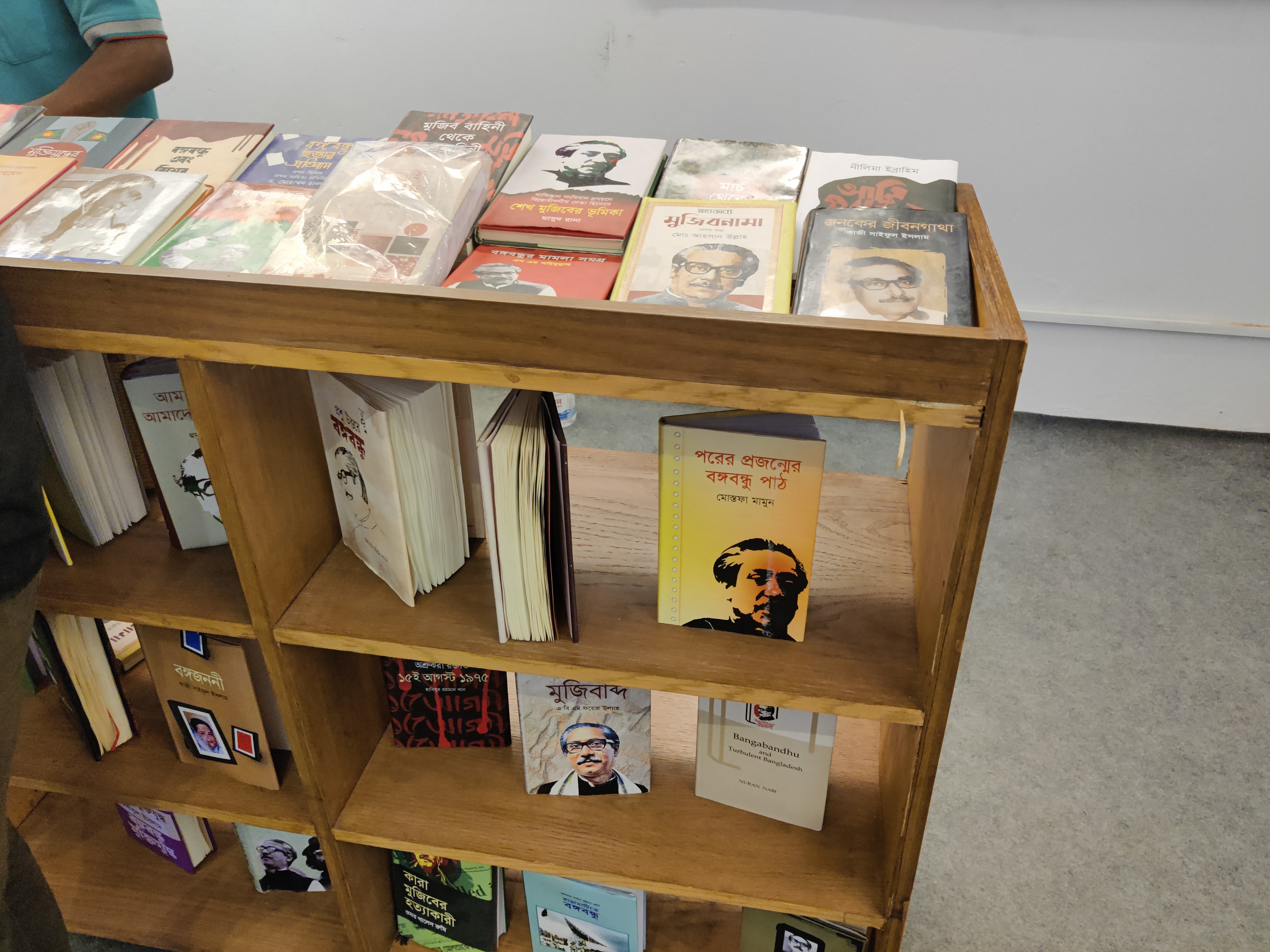 মেলায় ঢুকতেই শুরুর দিকে বঙ্গবন্ধু প্যাভিলিয়ন নামে নতুন একটি স্টল দেখতে পেলাম। আসলে এটি মেলার শুরুর দিকে থাকলেও আমি ঢুকেয়েছিলাম একবারে মেলা থেকে ঘুরে এসে সর্বশেষে। এক ঘণ্টারও বেশি সময় ধরে বিভিন্ন স্টলে মেলায় হাঁটাহাঁটির পর গরমে ঘামে বেশ অবস্থা খারাপ। তাই বঙ্গবন্ধু প্যাভিলিয়নে এজন্য ঢুকেছিলাম যাতে এসির নিচে কিছুক্ষণ স্বস্তিতে থাকতে পারি এবং স্টলটি ও ঘুরে দেখতে পারি । তবে প্যাভেলিয়নটি তে ঢুকে বেশ ভালোই লাগলো। ভিতরের পরিবেশ টা খুবই সুন্দর।