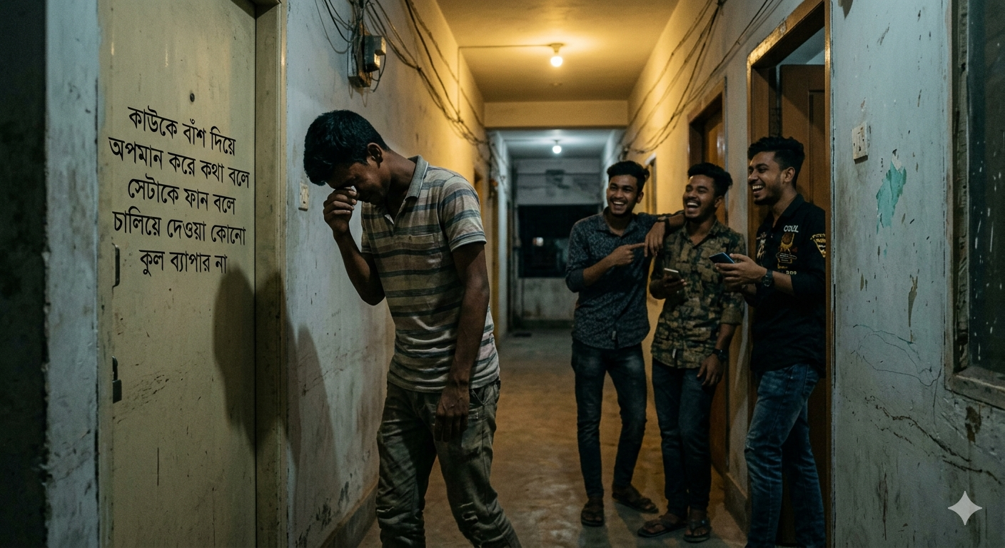 অপমানকে 'মজা' বা 'ফান' বলে চালিয়ে দেওয়া এটা একটা সাংস্কৃতিক অবক্ষয়। আমরা এতটাই অন্ধ হয়ে গিয়েছি যে, আমরা আর মানুষের যন্ত্রণা আর আনন্দের পার্থক্য বুঝতে পারছি না। আমার কাছে এখন মনে হয়, যারা এভাবে কাউকে অপমান করে নিজেকে 'কুল' মনে করে, তারা আসলে নিজেদের জীবনে কোনো বড় কিছু অর্জন করতে পারেনি, তাই অন্যকে ছোট করে নিজেদের বড় দেখানোর চেষ্টা করে। তারা নিজেদের শূন্যতা ঢাকতে অন্যের ওপর তীর ছোড়ে। তাদের এই 'কুলনেস' আসলে এক ধরণের ভণ্ডামি, এক ধরণের মানসিক অসুস্থতা।
