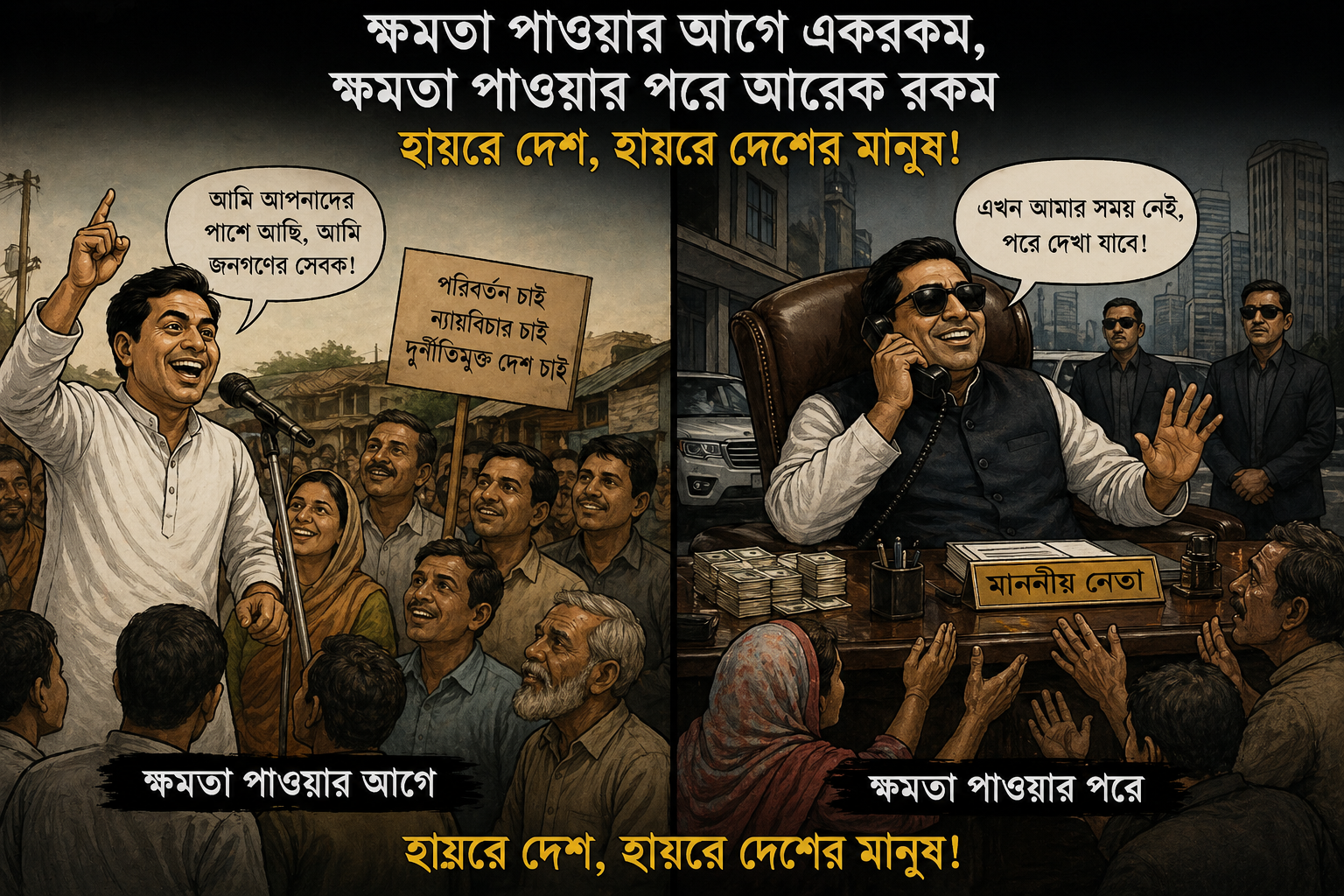 ক্ষমতার আগে প্রতিশ্রুতি, ক্ষমতার পরে বাস্তবতা: আমাদের সমাজের এক কঠিন প্রতিচ্ছবি