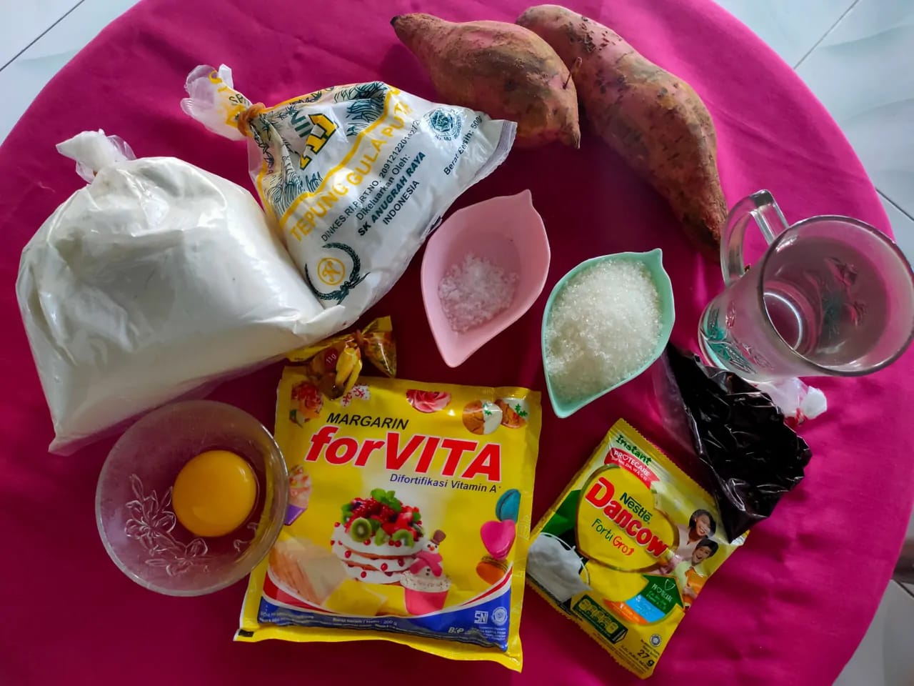 ঠিক আছে, হলুদ মিষ্টি আলু ডোনাট তৈরির উপাদানগুলির জন্য অবশ্যই অনেক উপাদানের প্রয়োজন হয় না এবং অবশ্যই সেগুলি সস্তা। আপনি নিকটস্থ সুপার মার্কেট বা বাজারে এই সমস্ত উপাদান পেতে পারেন। আপনাকে প্রথমে যে উপাদানগুলি প্রস্তুত করতে হবে তা হল ময়দা, গুঁড়ো চিনি, হলুদ চিনি, লবণ, দানাদার চিনি, খামির, গলিত চকোলেট, গুঁড়ো দুধ, মিনারেল ওয়াটার, মার্জারিন এবং ডিমের কুসুম। আপনি সমস্ত উপাদান প্রস্তুত করার পরে, এখন প্রথম ধাপ শুরু করা যাক।