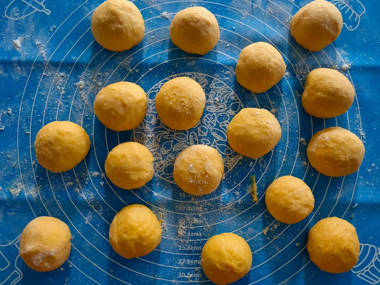 অষ্টম ধাপ, ময়দা একটু ওঠার পর, এখন কাজের মাদুর তৈরি করুন এবং ময়দা ছিটিয়ে দিন যাতে ময়দা লেগে না যায়। তারপর, ময়দাটিকে একই আকার এবং ওজনের কয়েকটি টুকরো করে কেটে নিন। আপনি আরও নির্ভুলতার জন্য একটি ময়দার স্কেল ব্যবহার করতে পারেন। তারপর, ময়দা আবার ঢেকে রাখুন এবং 10 মিনিটের জন্য রেখে দিন।