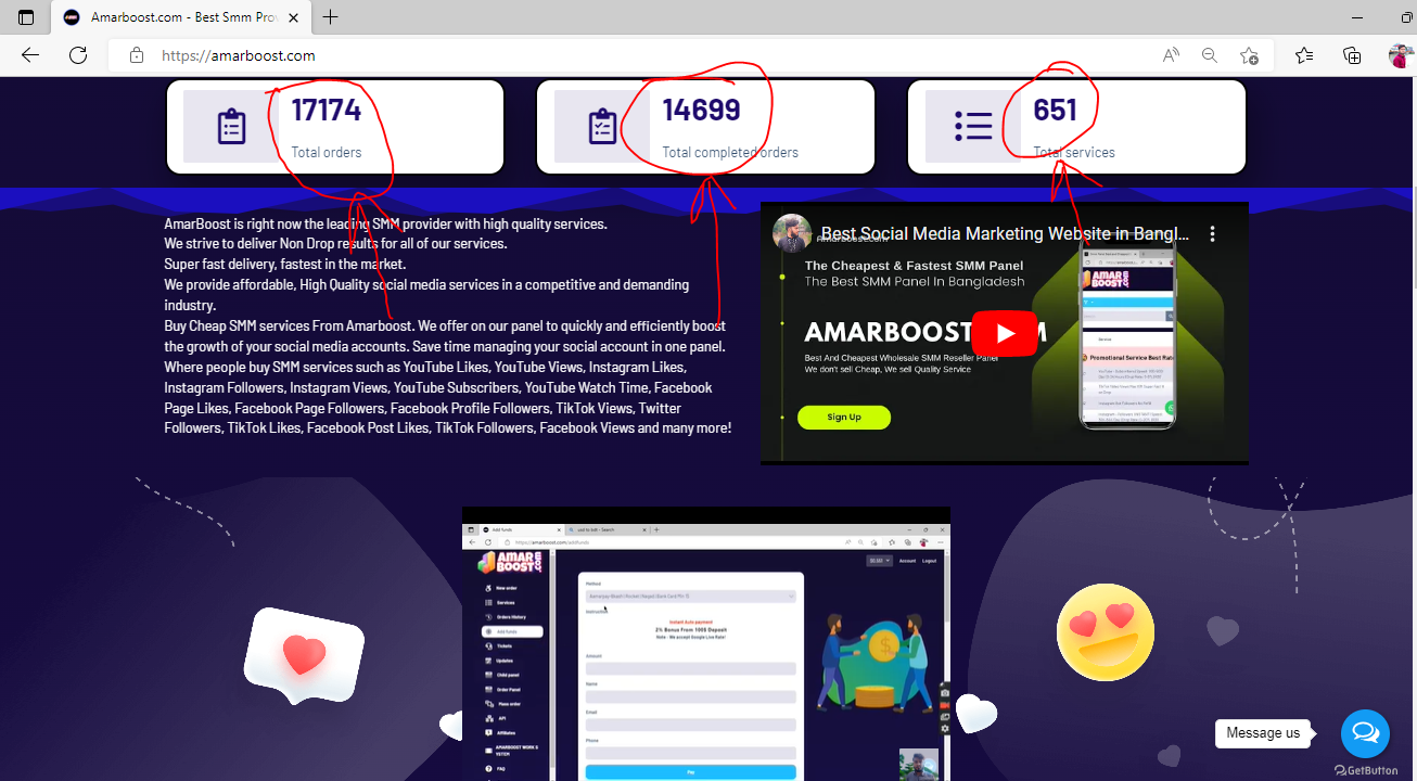 Buy Cheap SMM services From Amarboost. We offer on our panel to quickly and efficiently boost the growth of your social media accounts. Save time managing your social account in one panel. Where people buy SMM services such as YouTube Likes, YouTube Views, Instagram Likes, Instagram Followers, Instagram Views, YouTube Subscribers, YouTube Watch Time, Facebook Page Likes, Facebook Page Followers, Facebook Profile Followers, TikTok Views, Twitter Followers, TikTok Likes, Facebook Post Likes, TikTok Followers, Facebook Views and many more!