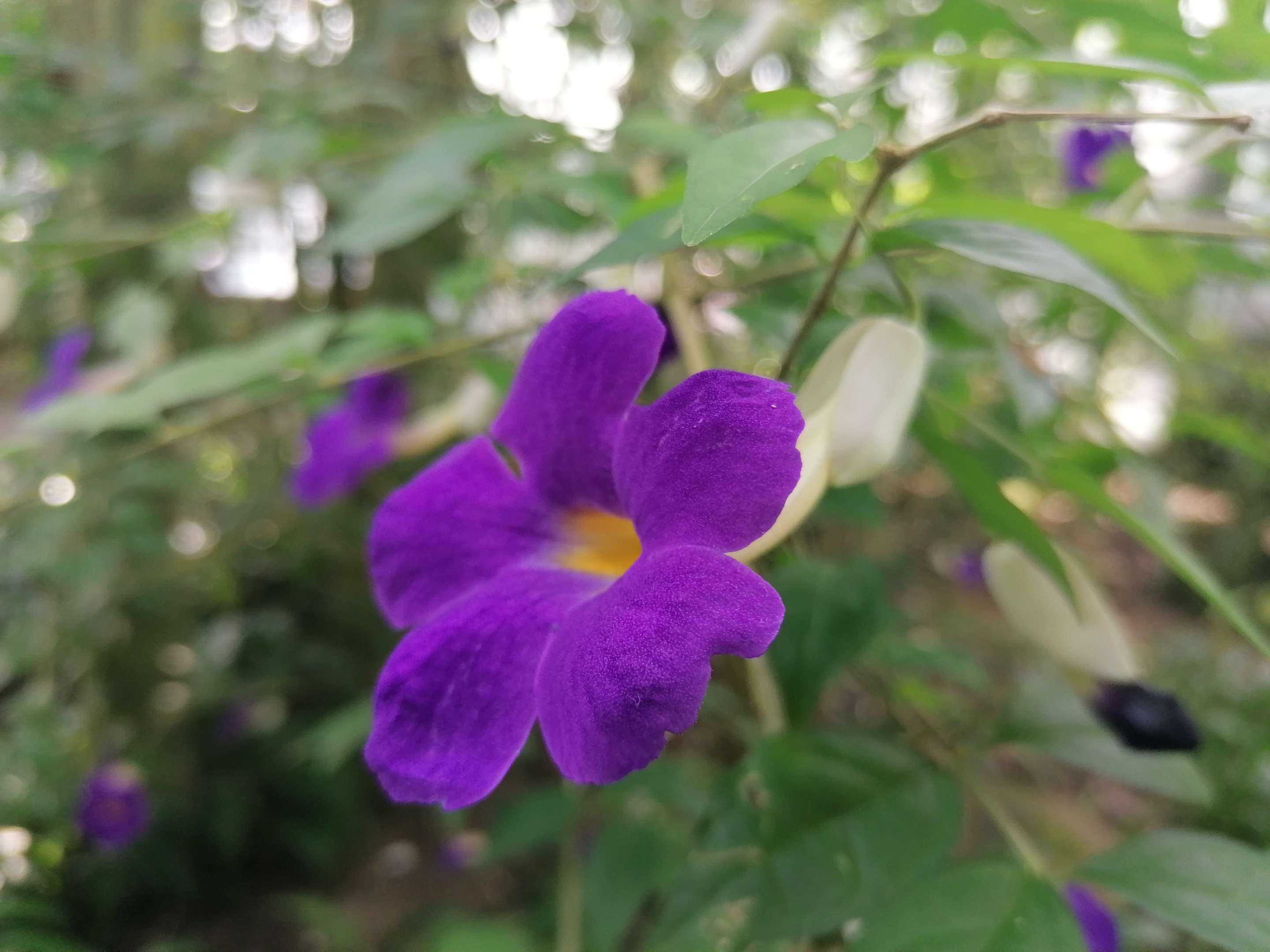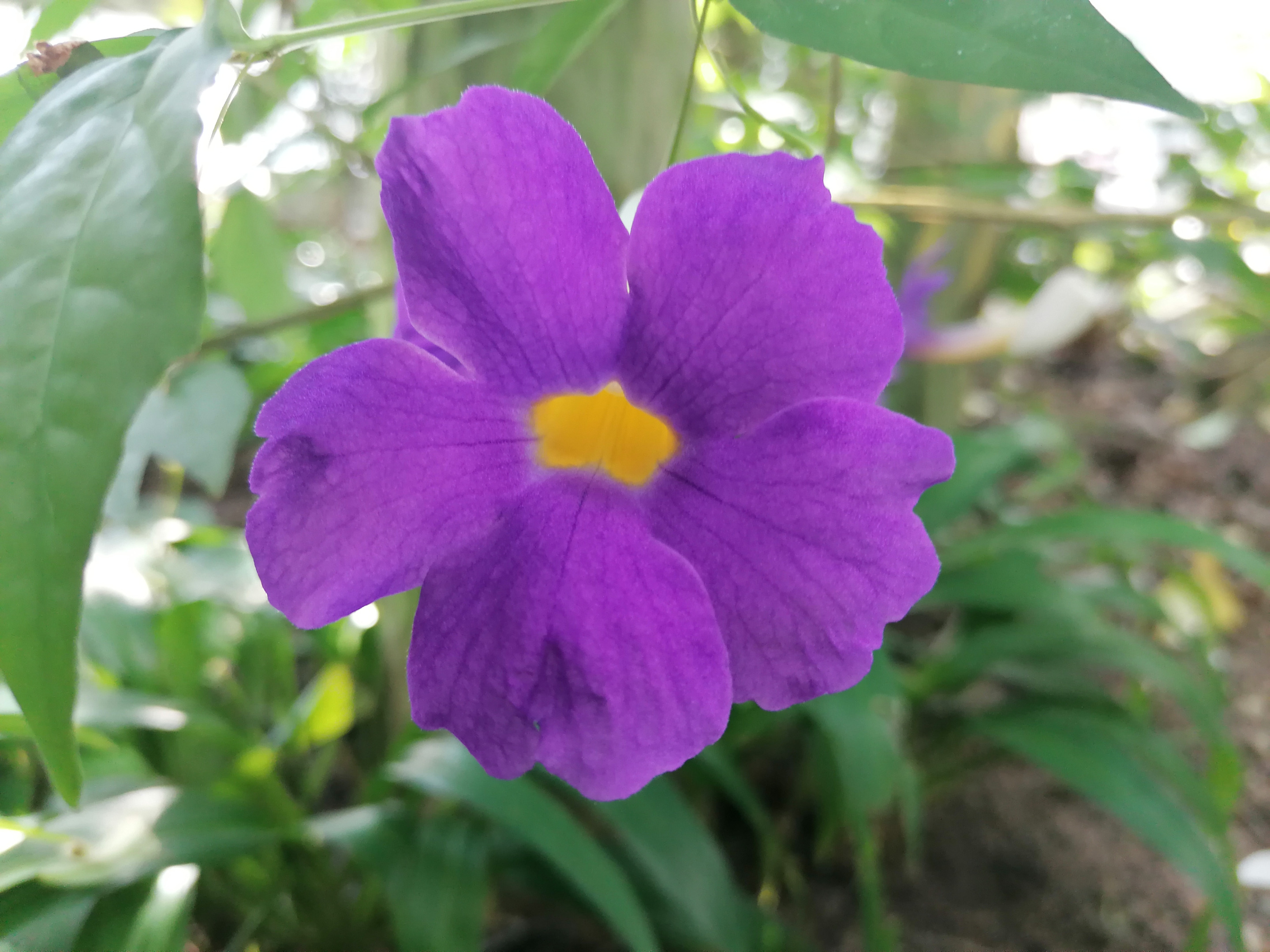 Welcome to another day of the Botanical Garden Tours. Today I want to present to you the Thunbergia Erecta, also known as the Clock Vine, or the King's Mantle.