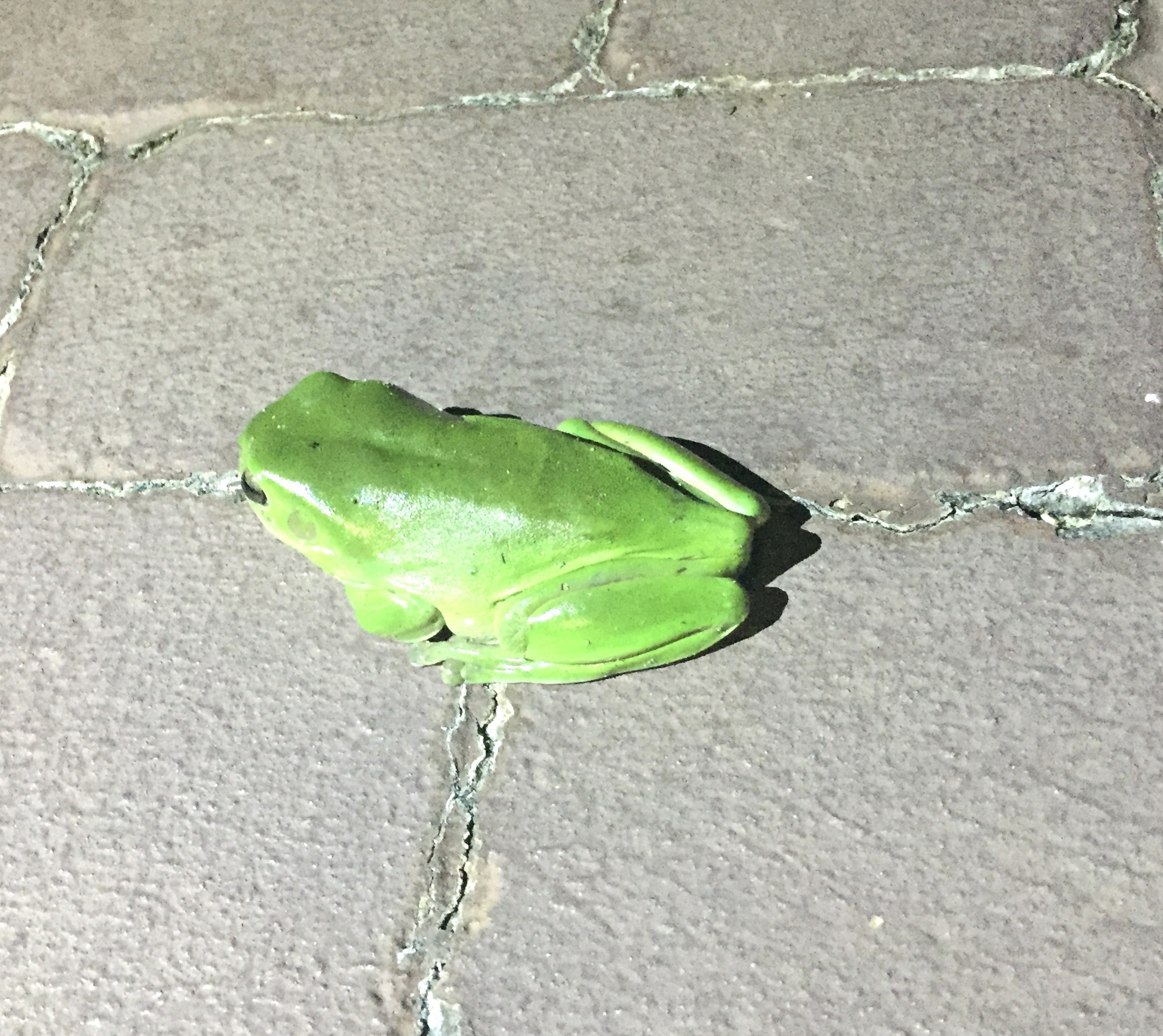 I was outside to star gaze and just happen to look down and saw a quiet small unassuming little green frog. I think frogs are stealth by nature but particularly so now that the toads are multiplying. Toads kill our beautiful green frogs.