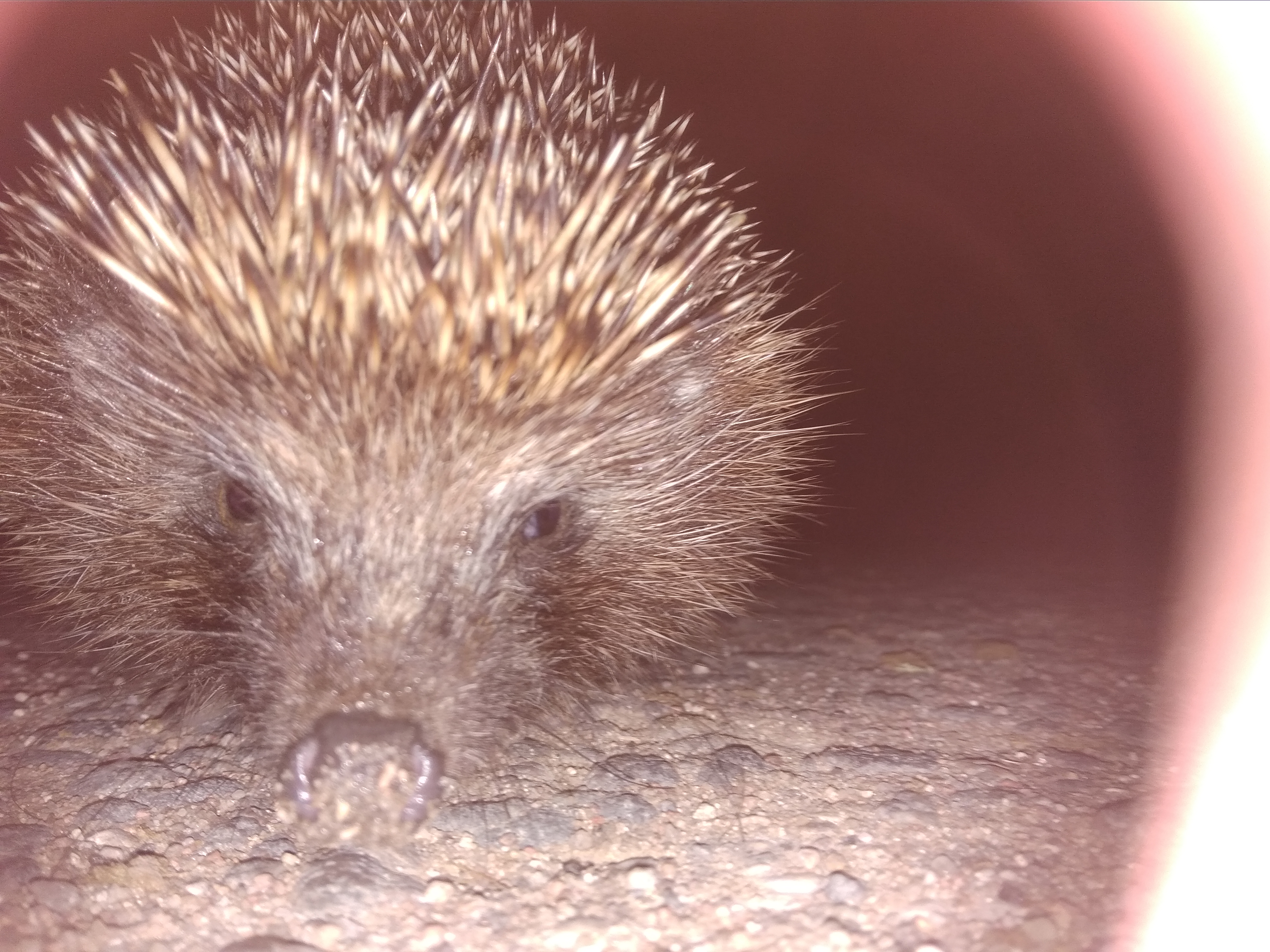 At night noticed a hedgehog running across the road. Becoming it to take pictures of hedgehog expressed interest in the phone trying to get closer closer to him. Amazing behavior of a hedgehog caused a great interest and turned out to make great pictures, as usual, Jerzy sensing the danger curled in a ball. But this is not about our handsome, he seemed to us posed!