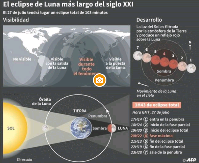 Esta noche 27 de julio de 2018, tendrá lugar uno de los acontecimientos astronómicos más importantes de los últimos tiempos. La tierra volverá a situarse entre el sol y la luna, tras dos años sin hacerlo, provocando el eclipse lunar más largo de lo que llevamos de siglo XXI