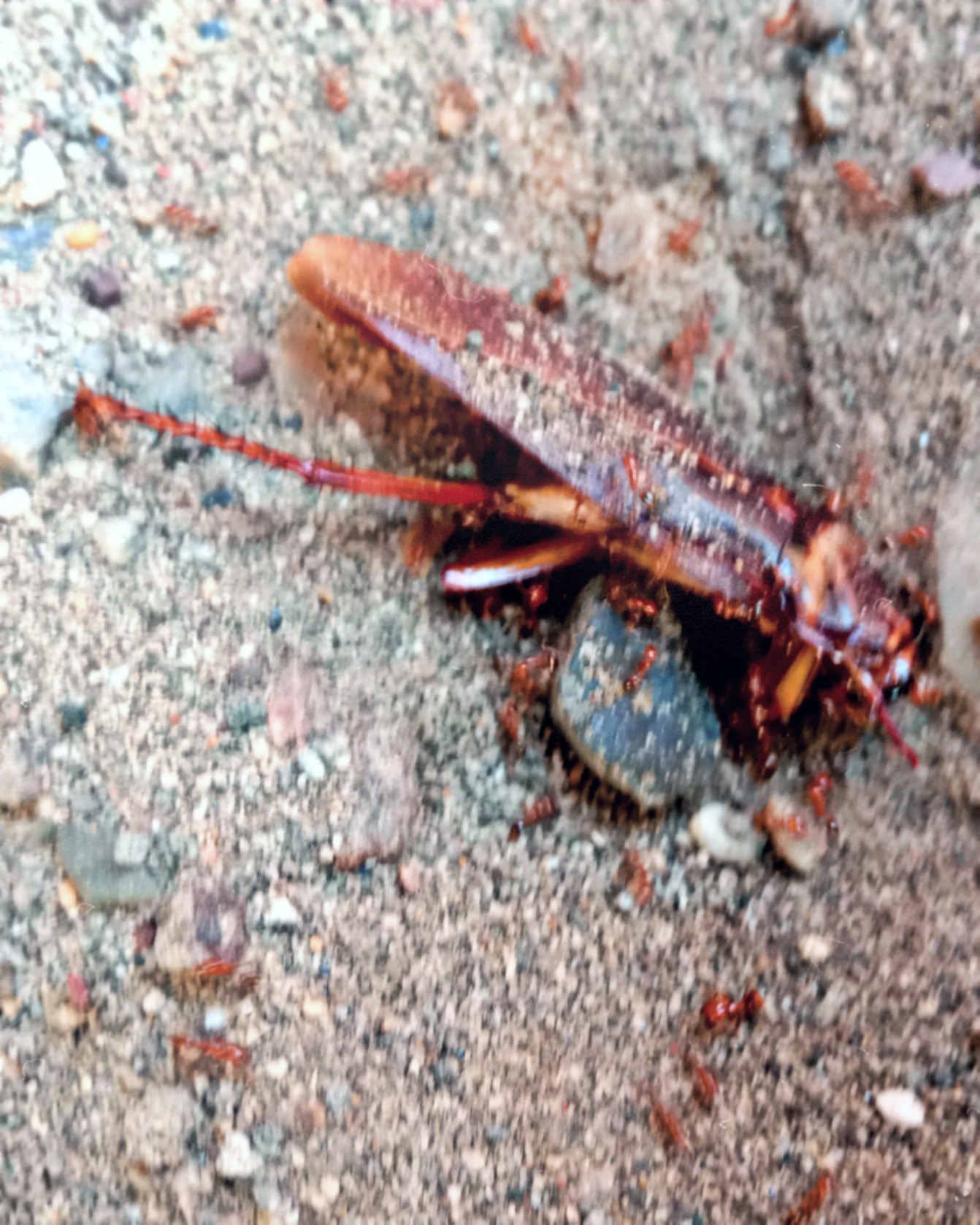 The fire ant can gradually cut the victim's body with his sharp mouth so that the body of the cockroach is slowly separated one by one.