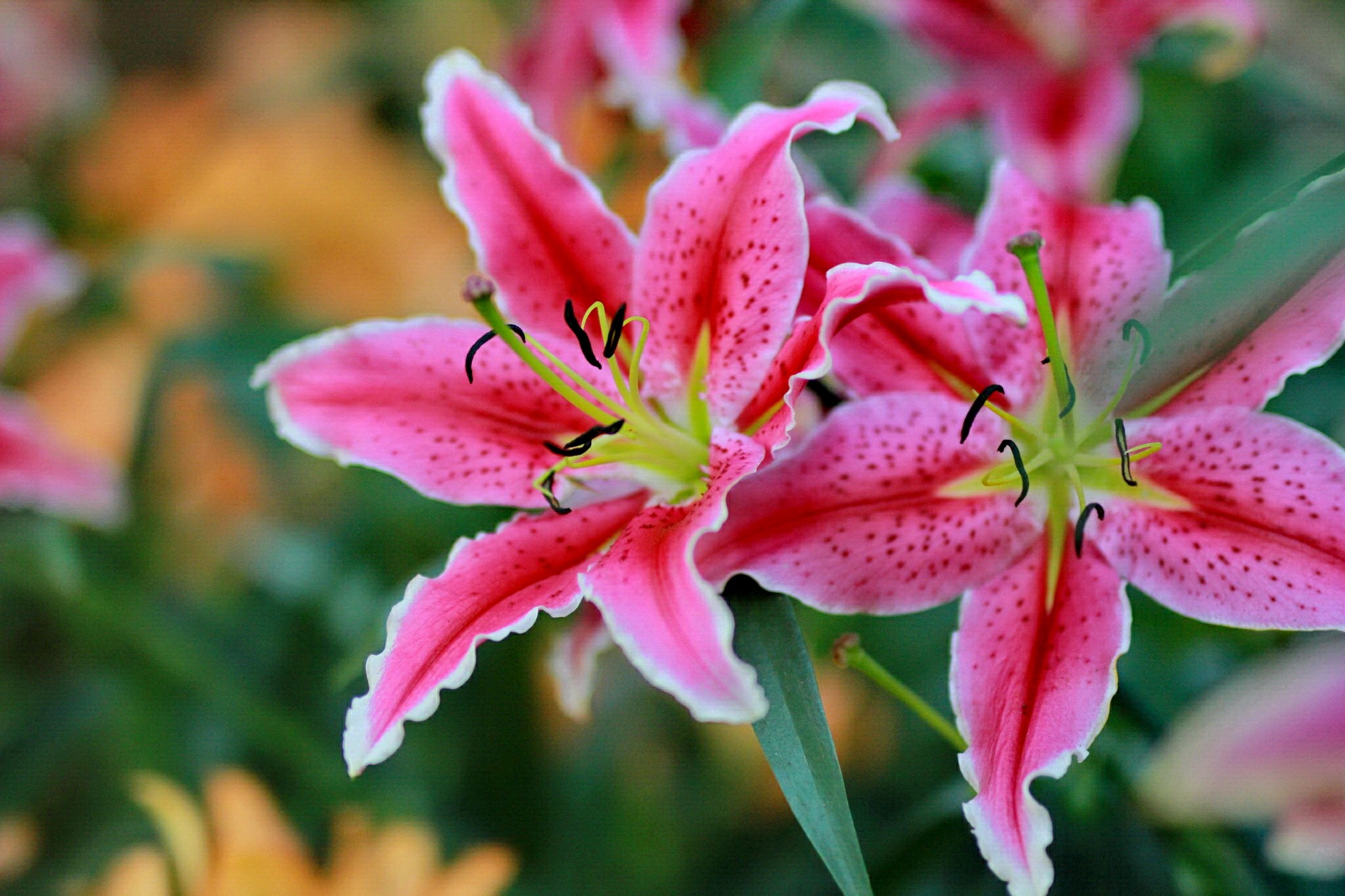 These Stargazer Lilies , i photographed at a international flower expo the hybrid lily is associated with the 'Oriental group Lilies'. They are a beautiful stunning large flower with lovely petals with very vibrant colors and are well known for their fragrant of perfume.