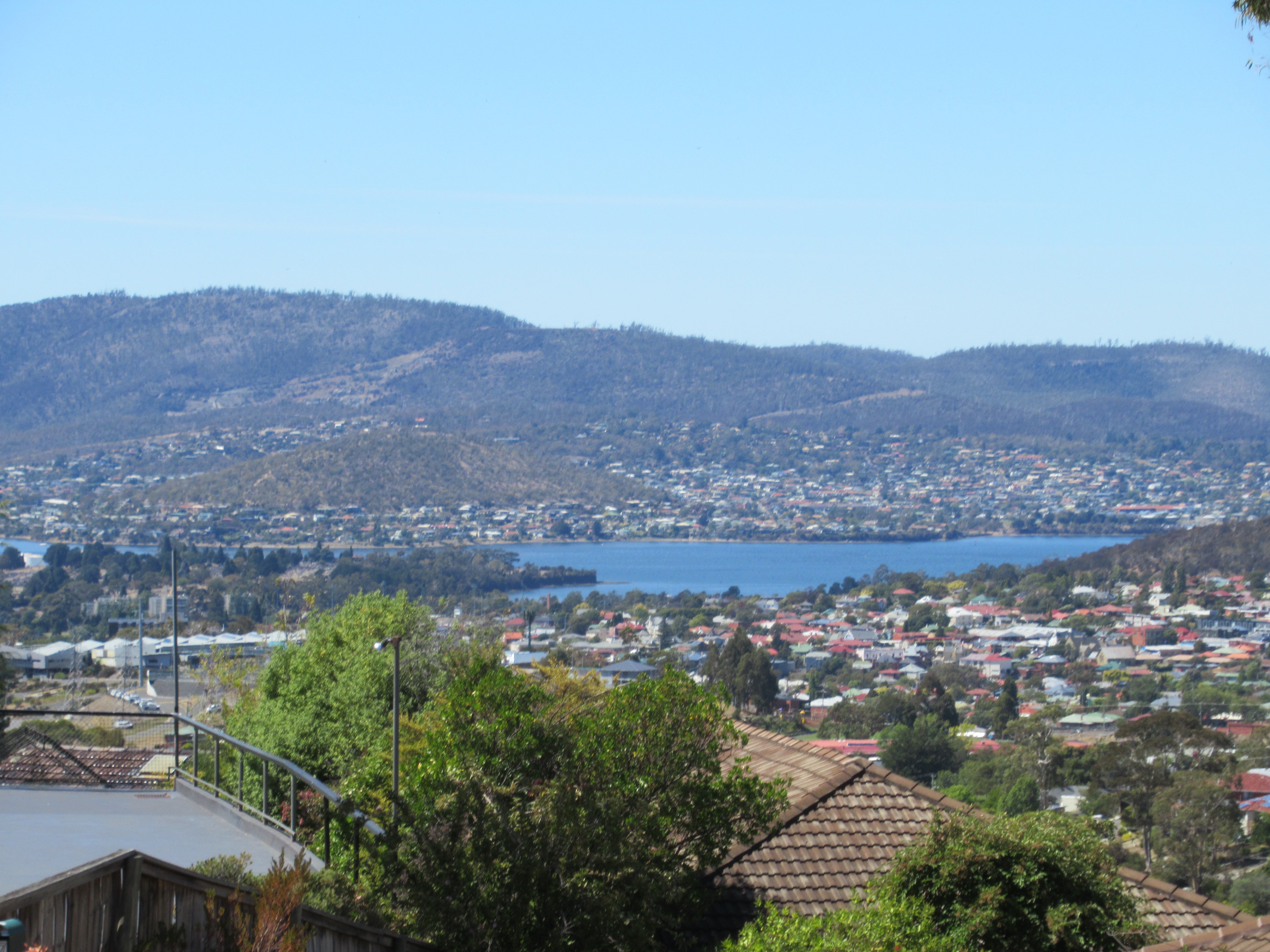 From almost the highest point on this side of the Lenah Valley, I look to my left and see Hobart, above. Nice view!
