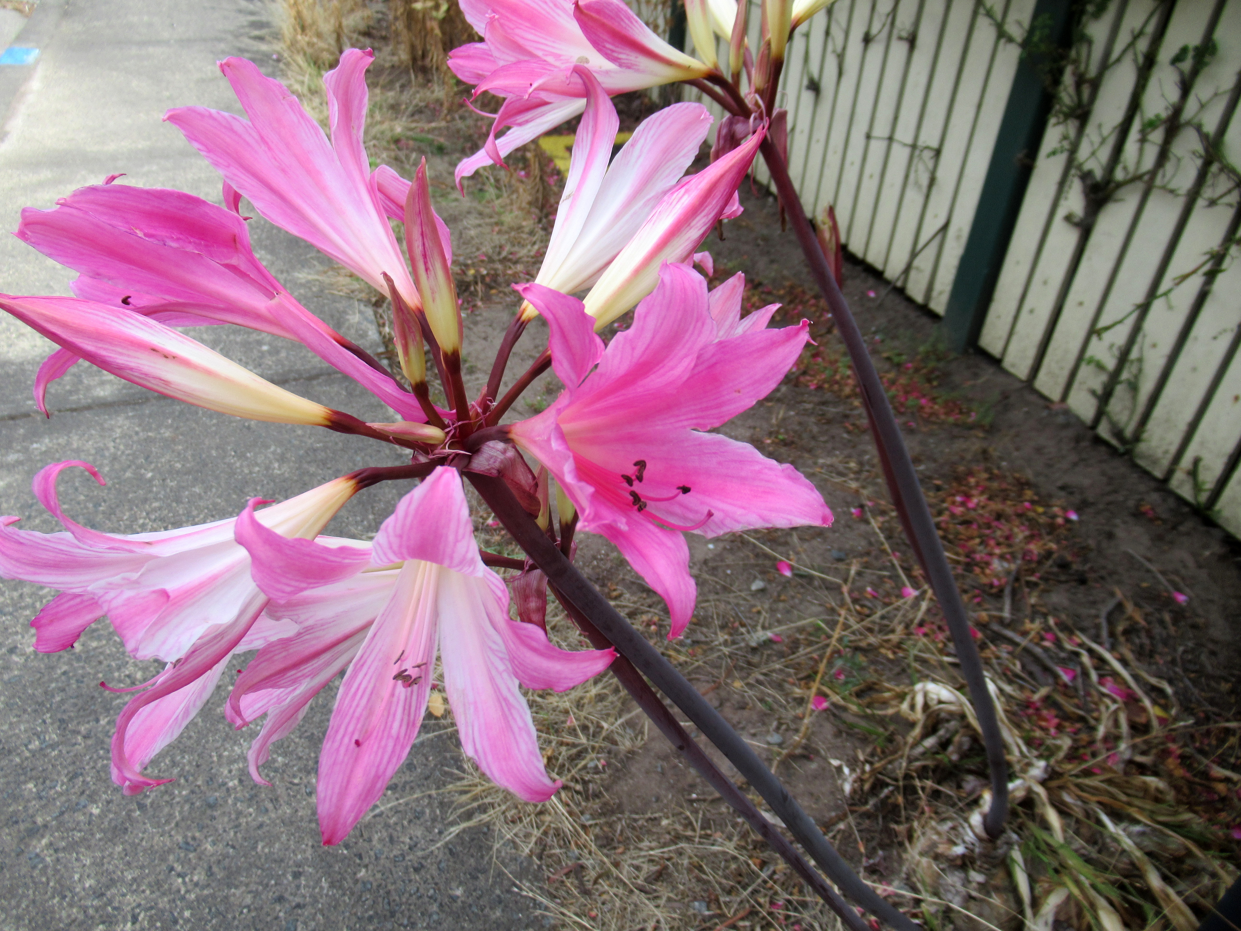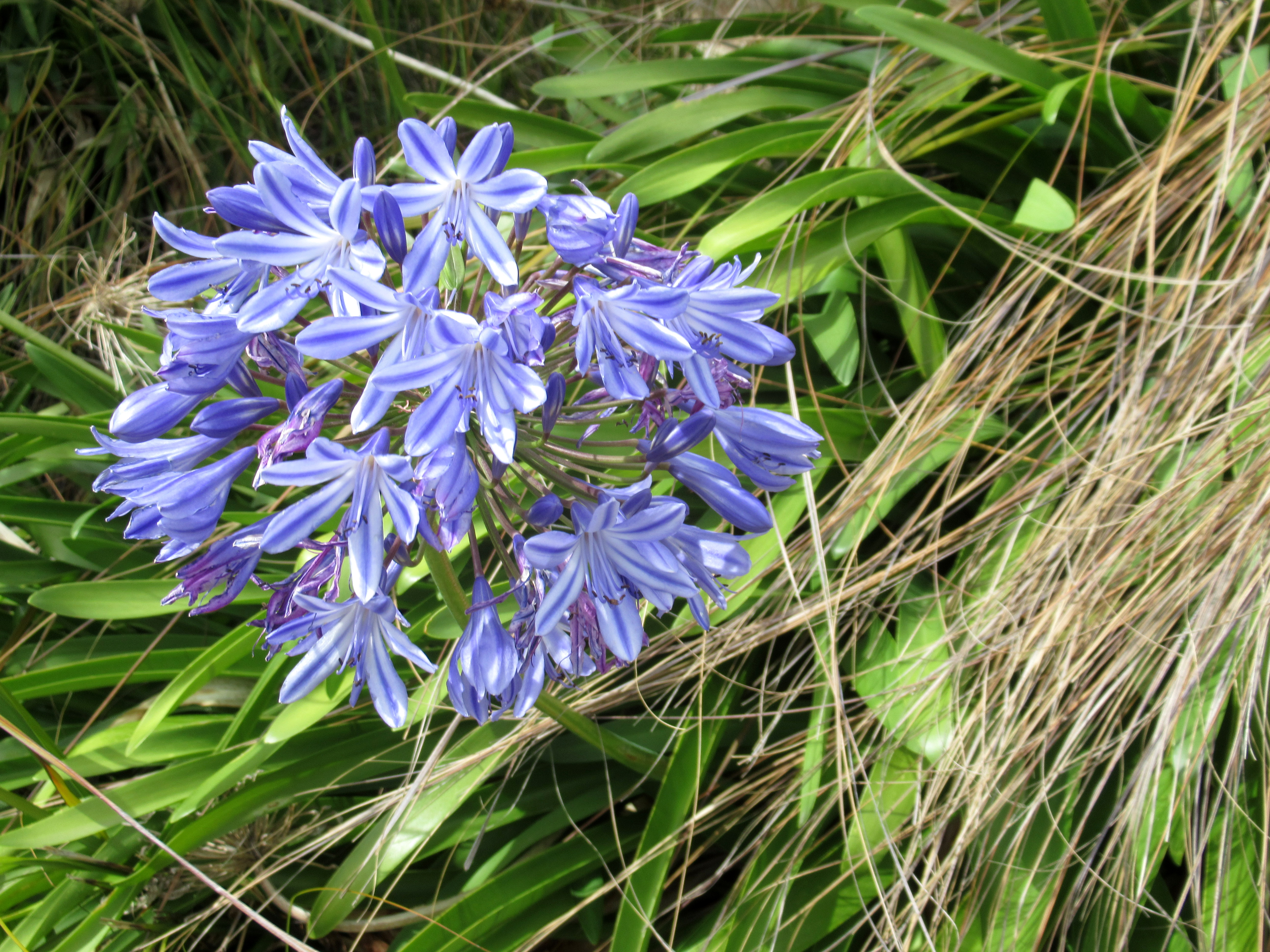 There are so many that I don't see in my own country and there are also surprises, like geraniums, that grow wild here and can be shrub sized. In the photo, above, these seemed to come from a large bulb. In the photo, below, these were growing in many gardens along with a white variety.