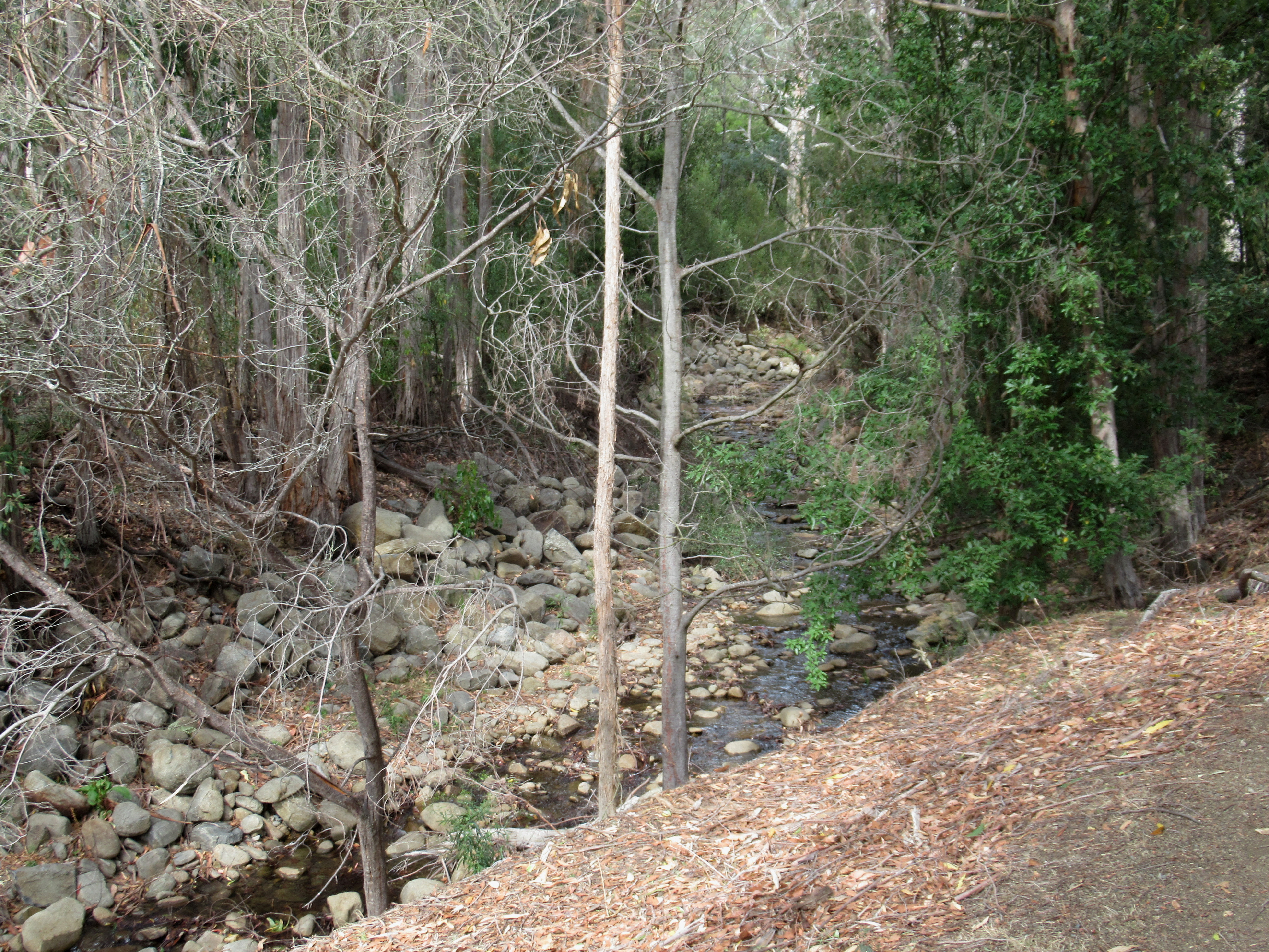 The water is very low right now but Hobart can get a torrential downpour and overflow the stream in a day.