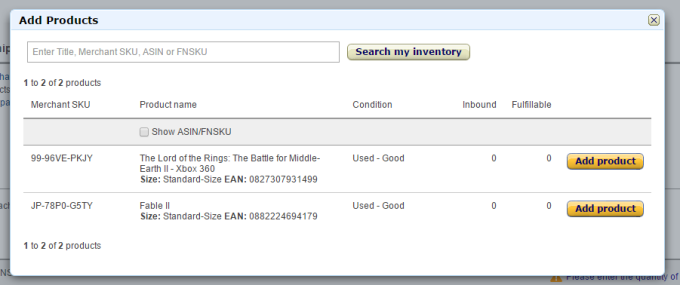 Once you set up a shipping plan, you will be prompted to add your items. Assuming this is the second item you’ve added, you should see two items. Select both.