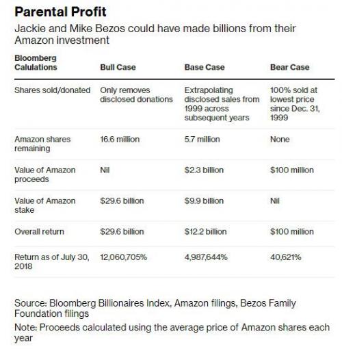 Nobody knows if his step-father and mother kept their entire investment. There were some shares which were moved to charity. The shares that are known to move are deducted from the orginal investment. This leaves Bezos parents with a 16.6 million shares of the e-commerce giant.