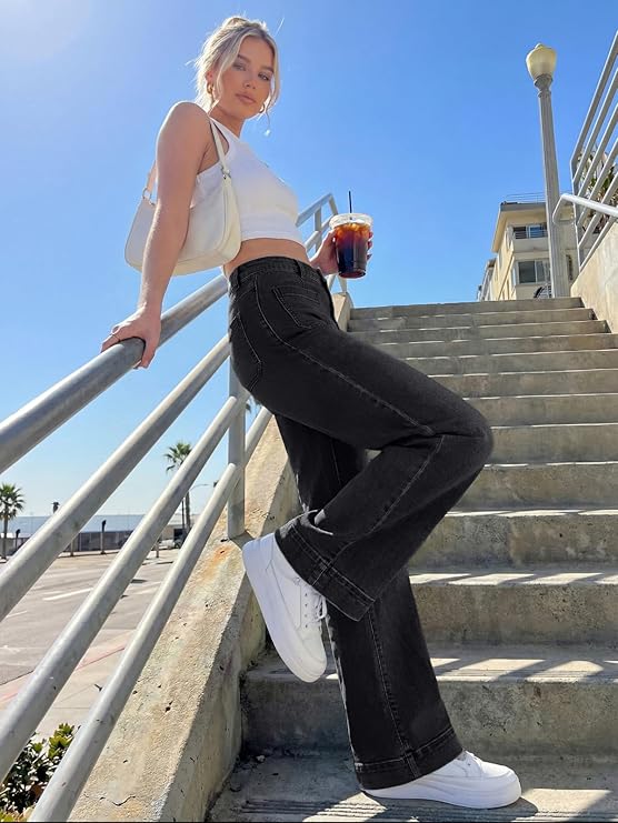 Struggling with what to wear in spring’s unpredictable weather or summer’s long sunny days? This look solves it all: a crisp white crop top, wide-leg black jeans, sleek sneakers, and a chic mini bag. Effortless style that carries you from morning to night—no second guessing needed.