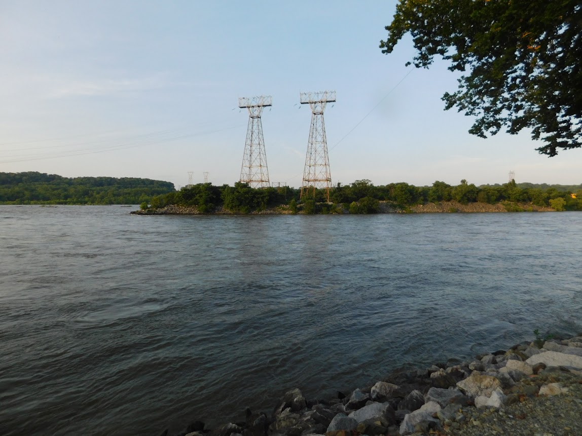 The parking lot is situated across from a small island in the river. To give you an idea of distance, those towers are the same ones with the resting birds up above.