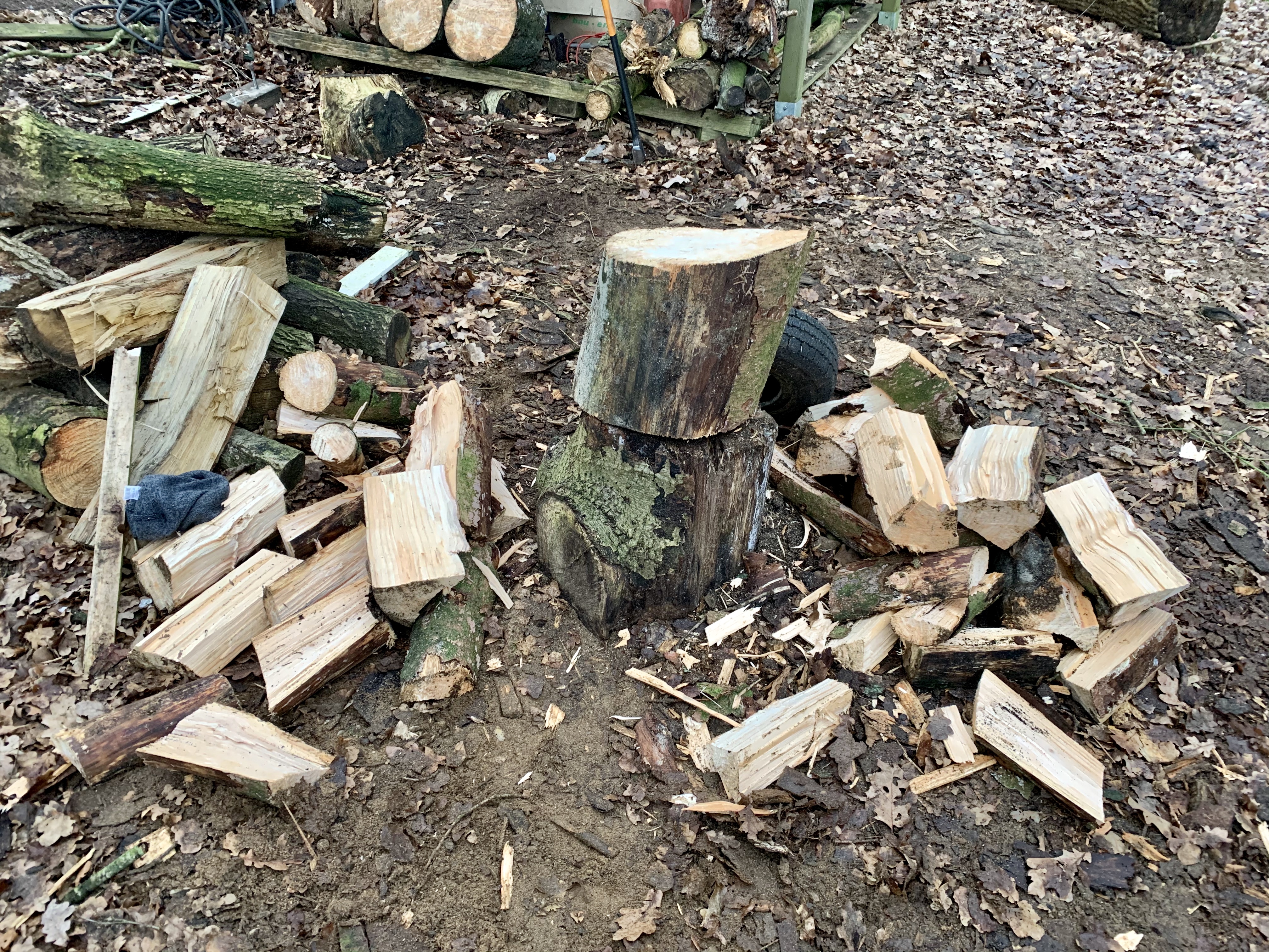 These ones here were pretty knotty pines so I had to work a little harder than normal to get them split but it was easy work with the axe.