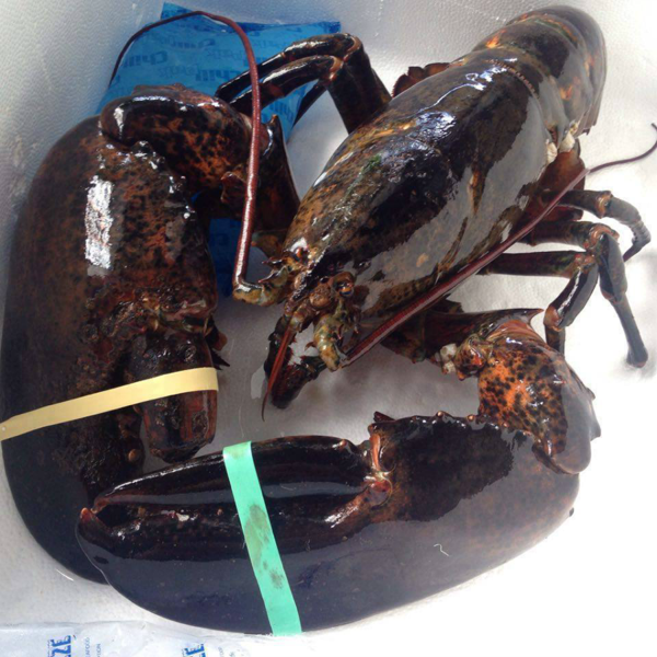 American lobster or lobster Americas ( binomial nomenclature : Homarus americanus ), is a species of lobster found in seaside Atlantic North America , mainly from Labrador to New Jersey . Within North America, it is also known as 'Northern lobster' or 'Maine lobster'. It has two larger and stronger bodies, a pair of long beards and four pairs of legs, which can reach a body length of 64 cm (25 in), and a volume of over 20 kilograms (44 lb), making it a species The most severe armor in the world. Its closest close relative is European lobster ( Homarus gammarus), can be distinguished by its color and lack of thorns on the underside of the rostrum . American evergreen green lobsters turn brown with red spikes, but some color variations have been observed.