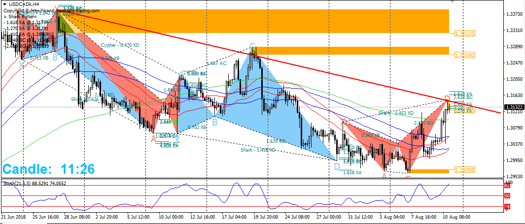 My technical analysis for the USDCAD on August 12, the pair is rebounding from a bearish trend with a strong action price (Pinbar) and forming a harmonic shark pattern with saturation in the stochastic indicator