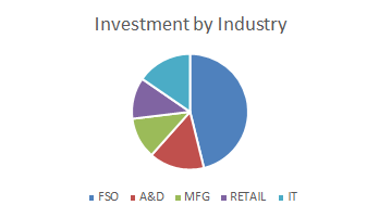 Even though we invested the same in each stock, if the Financial Services industry falls, we put almost half our portfolio at risk. We're still not diversified.