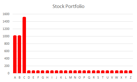 Suppose we have 26 stocks (labeled A-Z). Below represents our holding in each stock. Are we perfectly diversified?