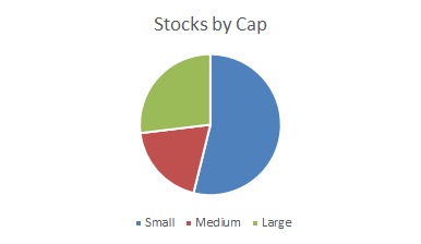 We just invested $2,000 in one stock in thirteen different industries. If we break down our portfolio by cap size (small, medium, large cap stocks), we can see that we are over-invested in small cap stocks. If a market force causes hardship on small cap stocks, our portfolio can take a huge hit.