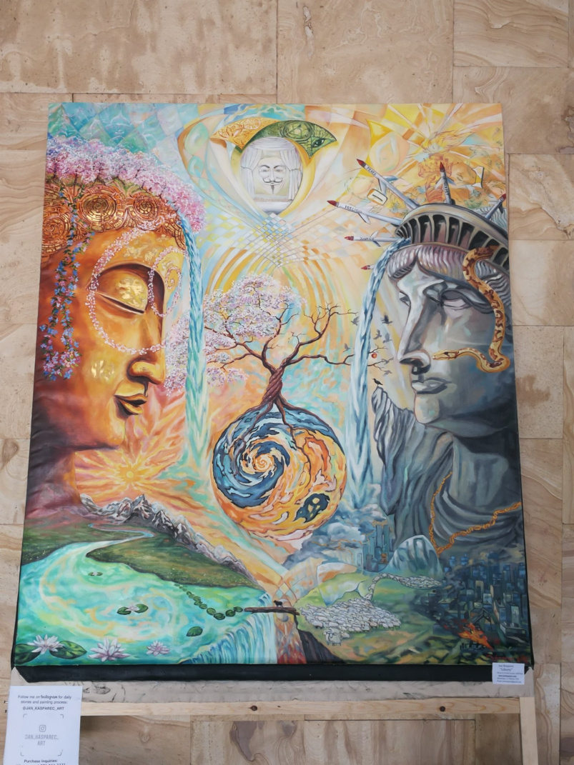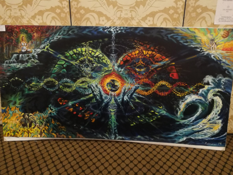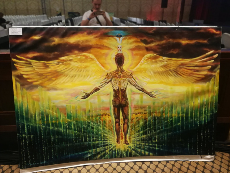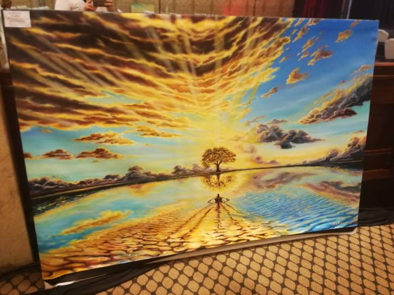 Near the main meeting area, the conference center hosted an art exhibit. Here are some photos I took of the canvases on display.