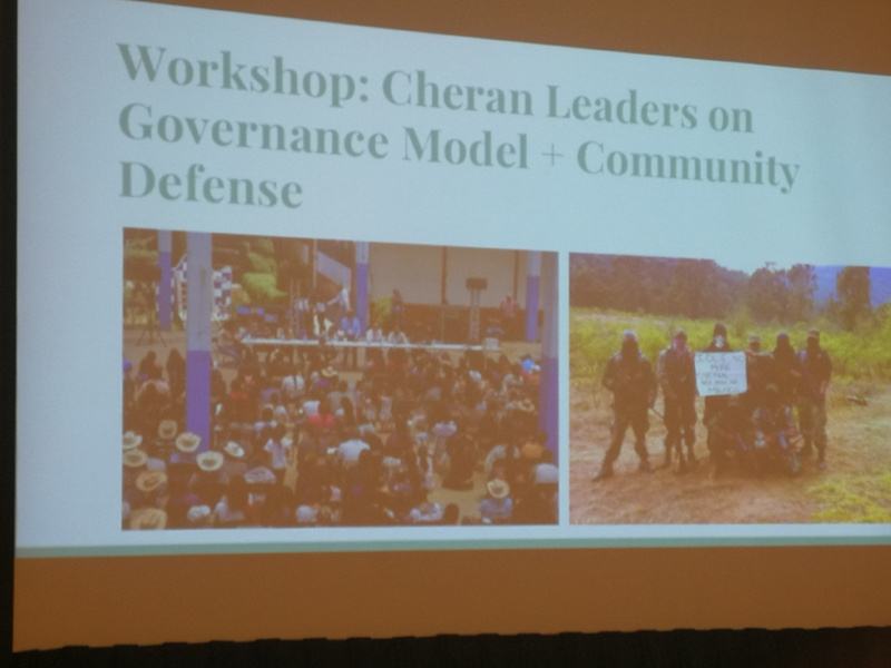Another workshop I attended was about the Mexican community of Cheran. We got to hear the story of their liberation from poachers who were exploiting their land, while making them live in a climate of omnipresent insecurity. Their situation was made even worse by the corrupt government leaders in that region who worked hand in hand with the criminals.
