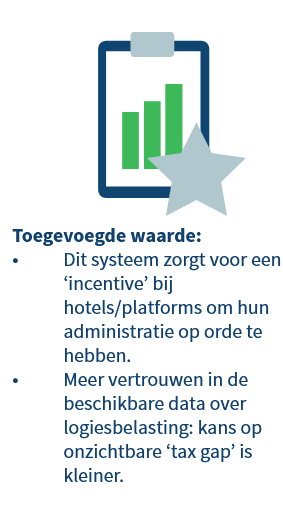 The added value of blockchain technology is that it creates an incentive for a hotel/platform to have their administration in order and that there is more trust in the available data on taxes....wait for it... * The chance of an invisible 'tax gap' becomes smaller *