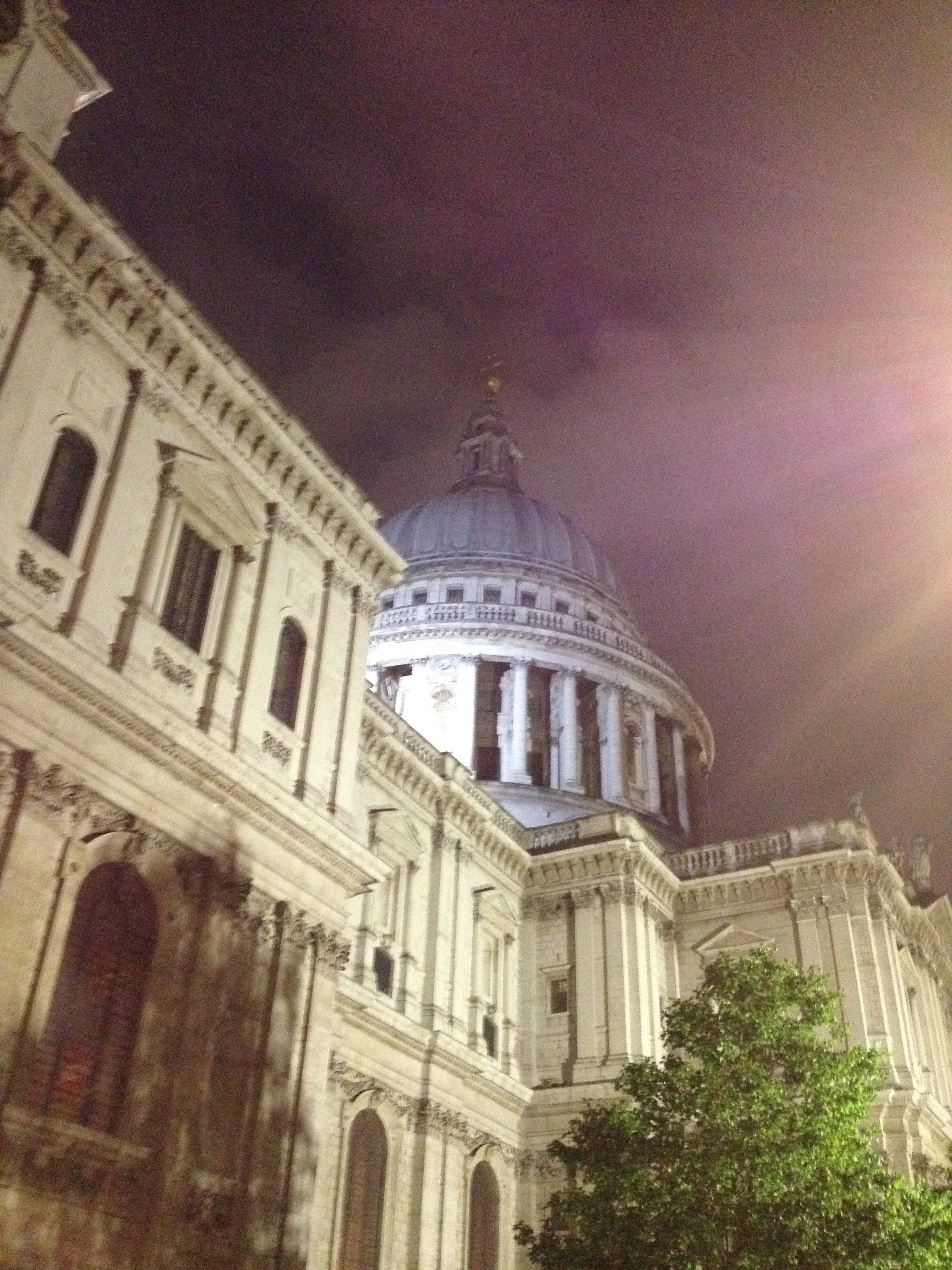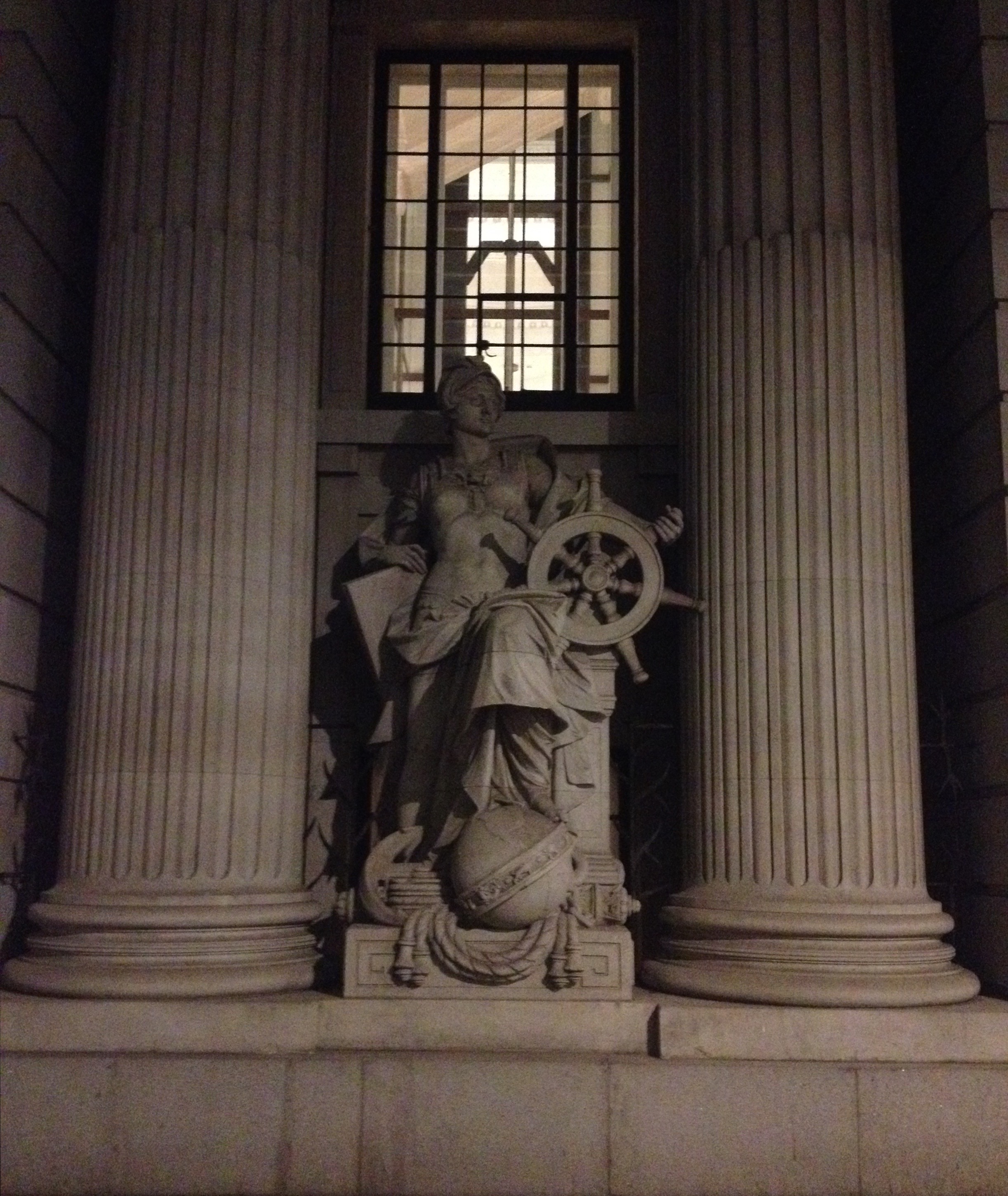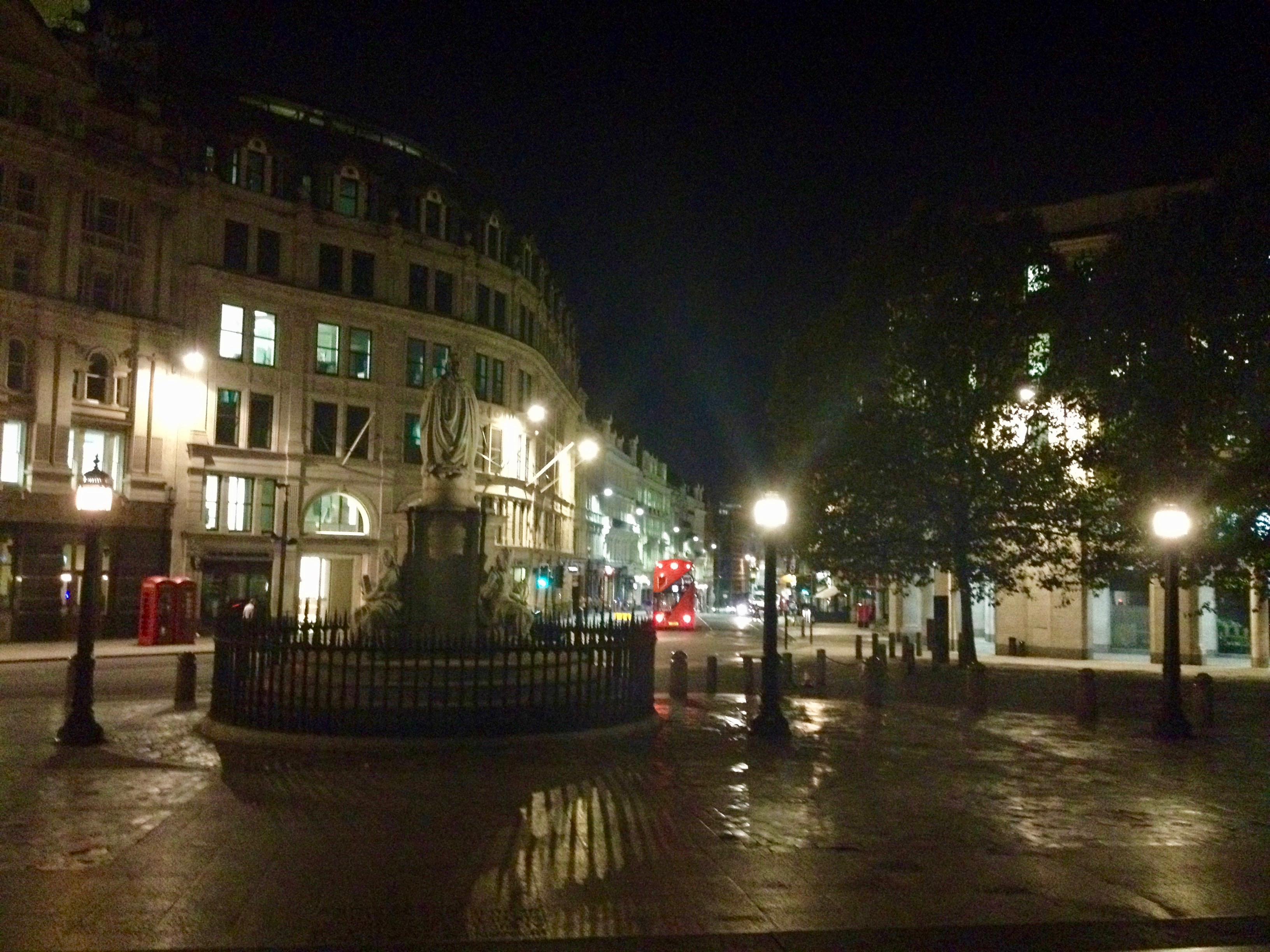 View from St Paul's steps on a Sunday evening when nobody is around (The statue is of Queen Ann & has been standing there since 1710).