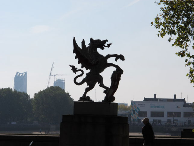 The City of London also known as square mile is walled in by dragons. You will find them at each edge of the City.