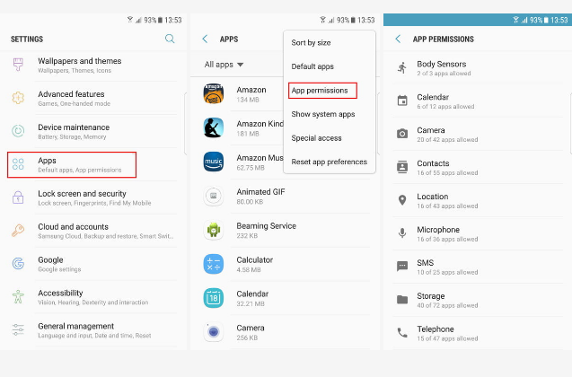 • Apps and tap the apparatus symbol or three vertical specks at the upper right then app consents.