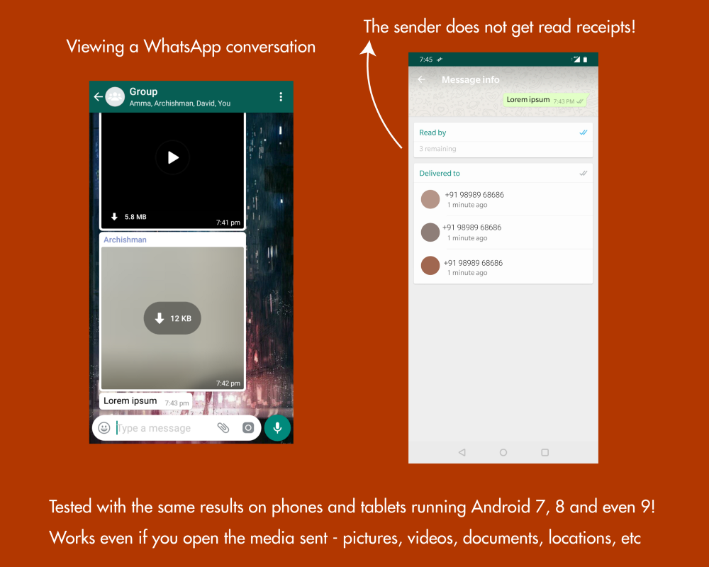 It interests me that WhatsApp scrutinized receipts can be deluded in such an essential way, even on the latest types of Android. I think this is an instance of a bug that has remained undetected over all of these years, and has in this way stayed through such enormous quantities of variations of Android.